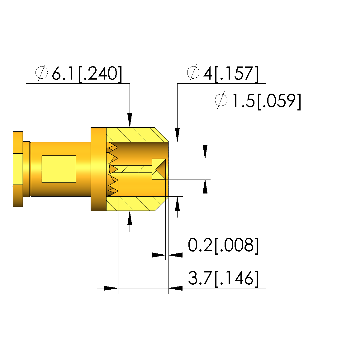 - Outer conductor tip style diameter: 6.1 mm [.24 in]