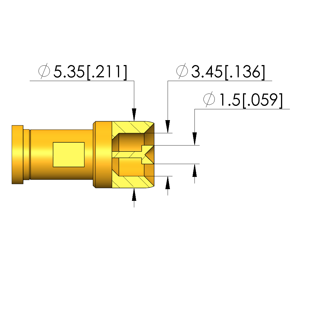 - Outer conductor tip style diameter: 5.35 mm [.21 in]