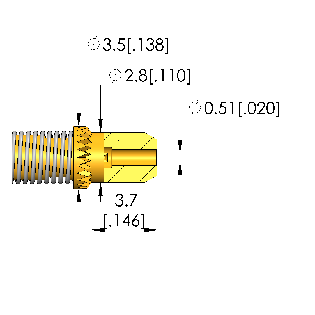 - Outer conductor tip style diameter: 3.5 mm [.137 in]