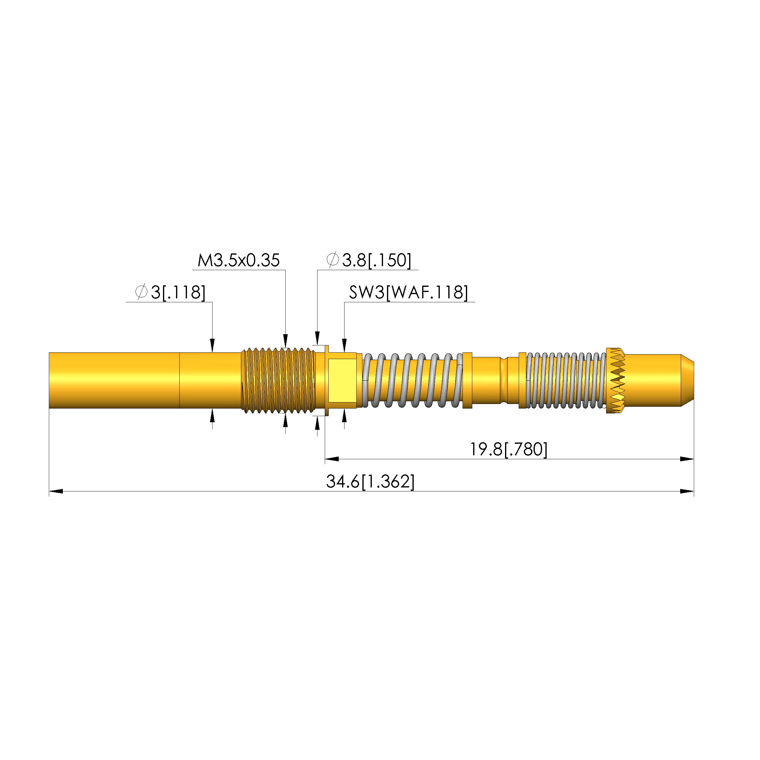 - Spring force of each inner conductor at working stroke: 1 N [3.59 ozf]