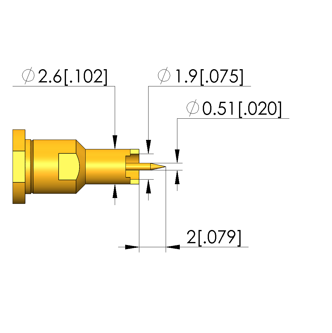 - Outer conductor tip style diameter: 2.6 mm [.102 in]