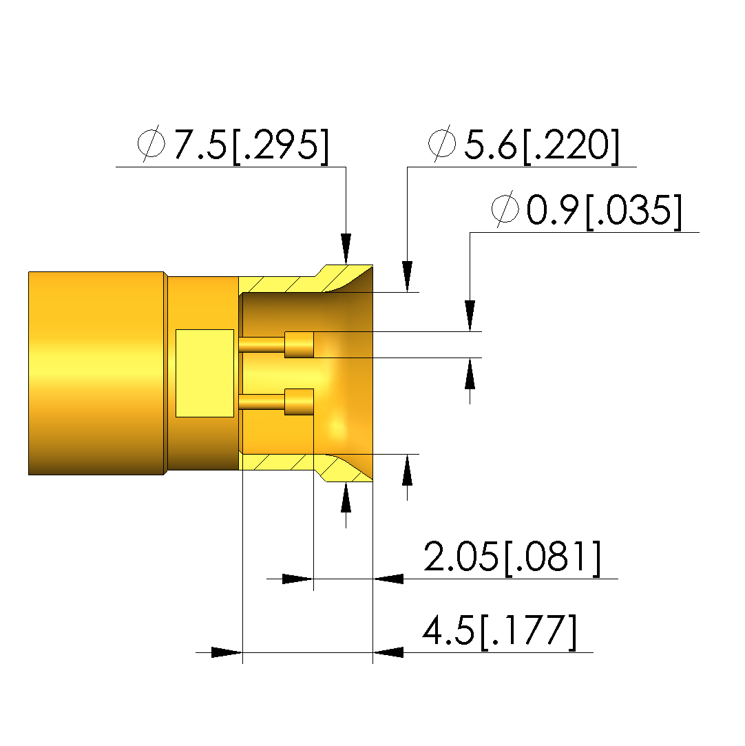 - Outer conductor tip style diameter: 7.5 mm [.295 in]