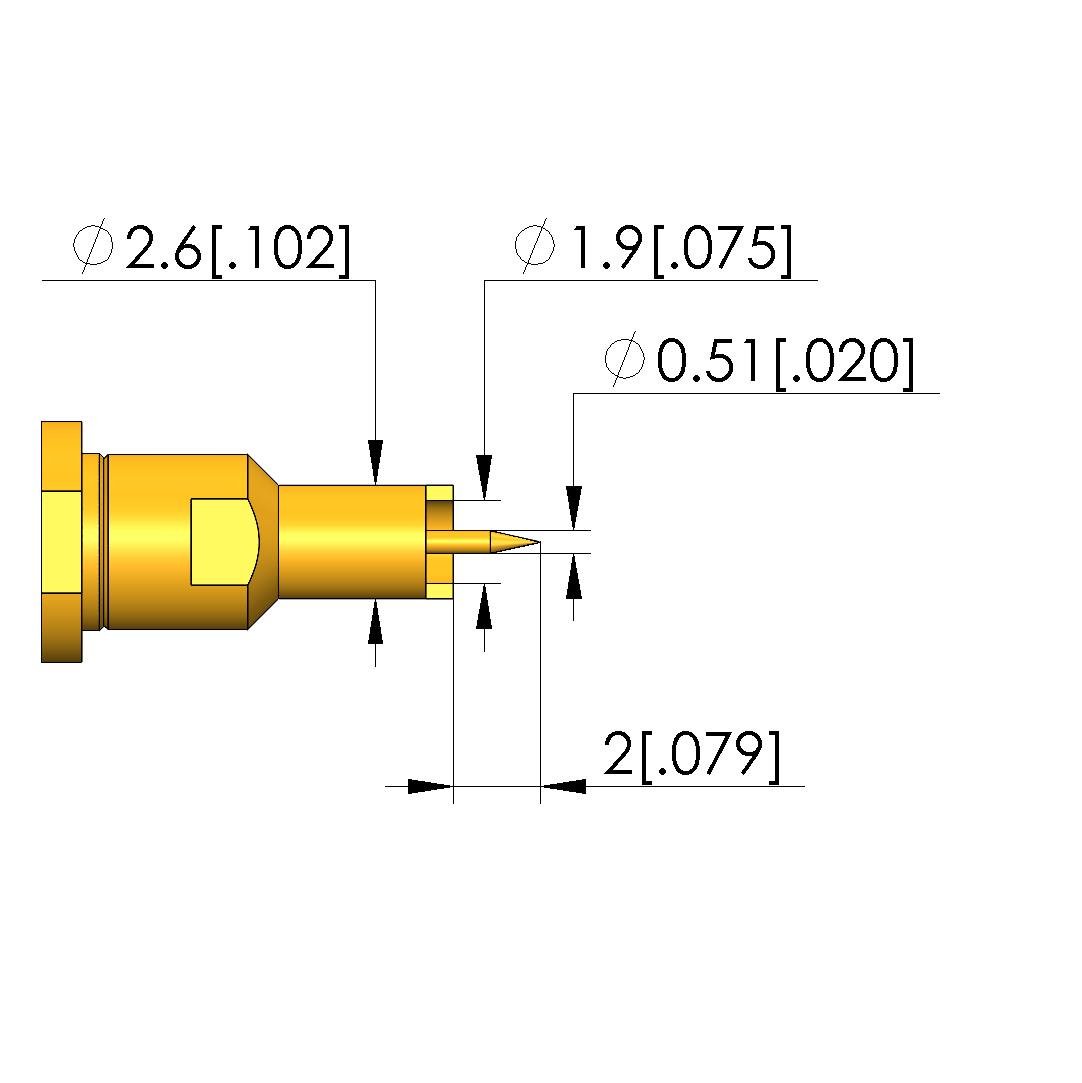 - Outer conductor tip style diameter: 2.6 mm [.102 in]
