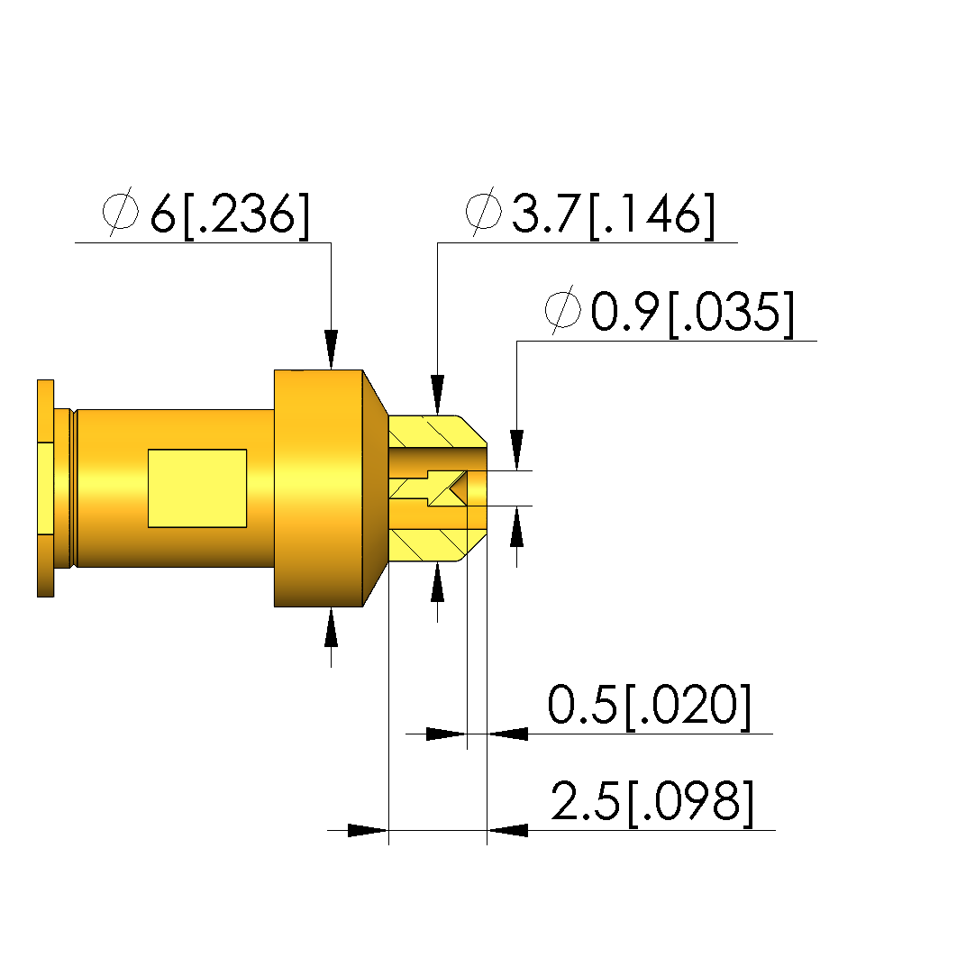 - Inner conductor tip style diameter: 0.9 mm [.035 in]