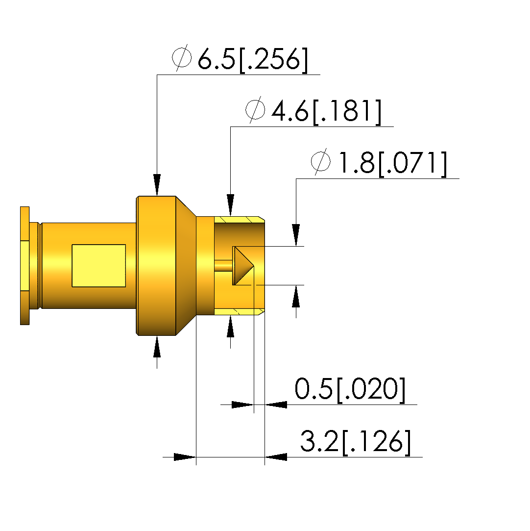 - Outer conductor tip style diameter: 6.5 mm [.255 in]
