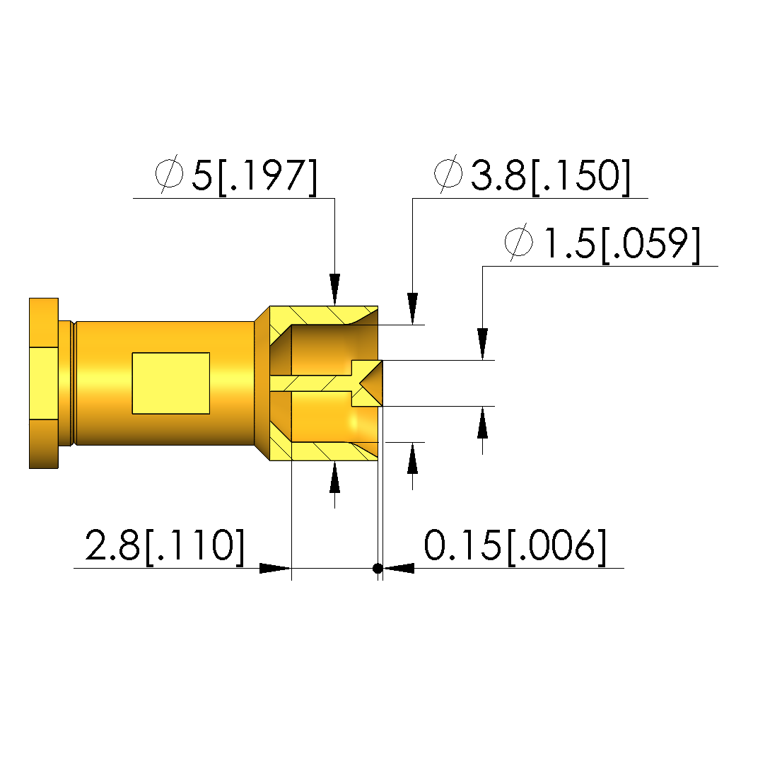 - Inner conductor tip style diameter: 1.5 mm [.059 in]
