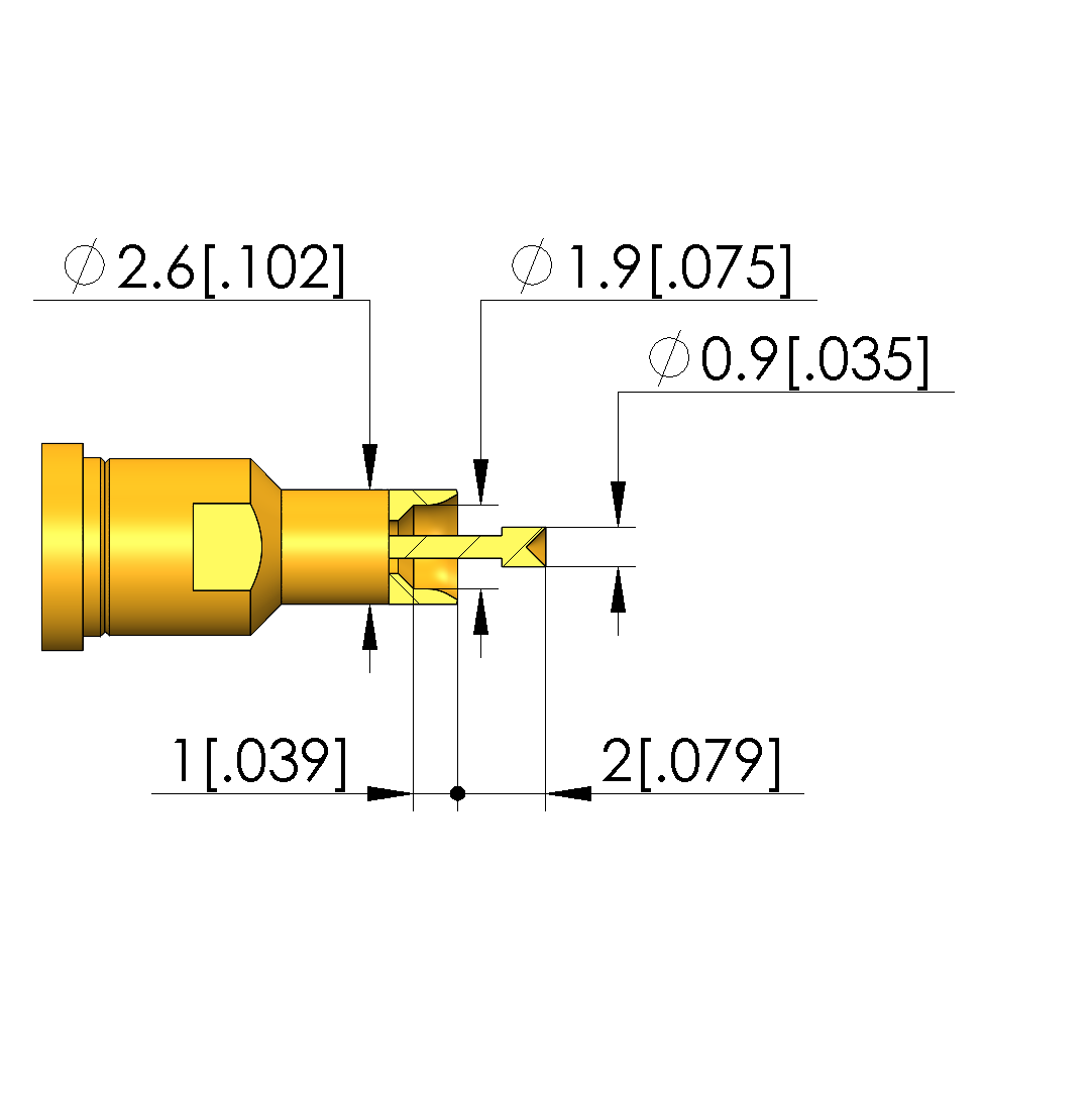 - Outer conductor tip style diameter: 2.6 mm [.102 in]