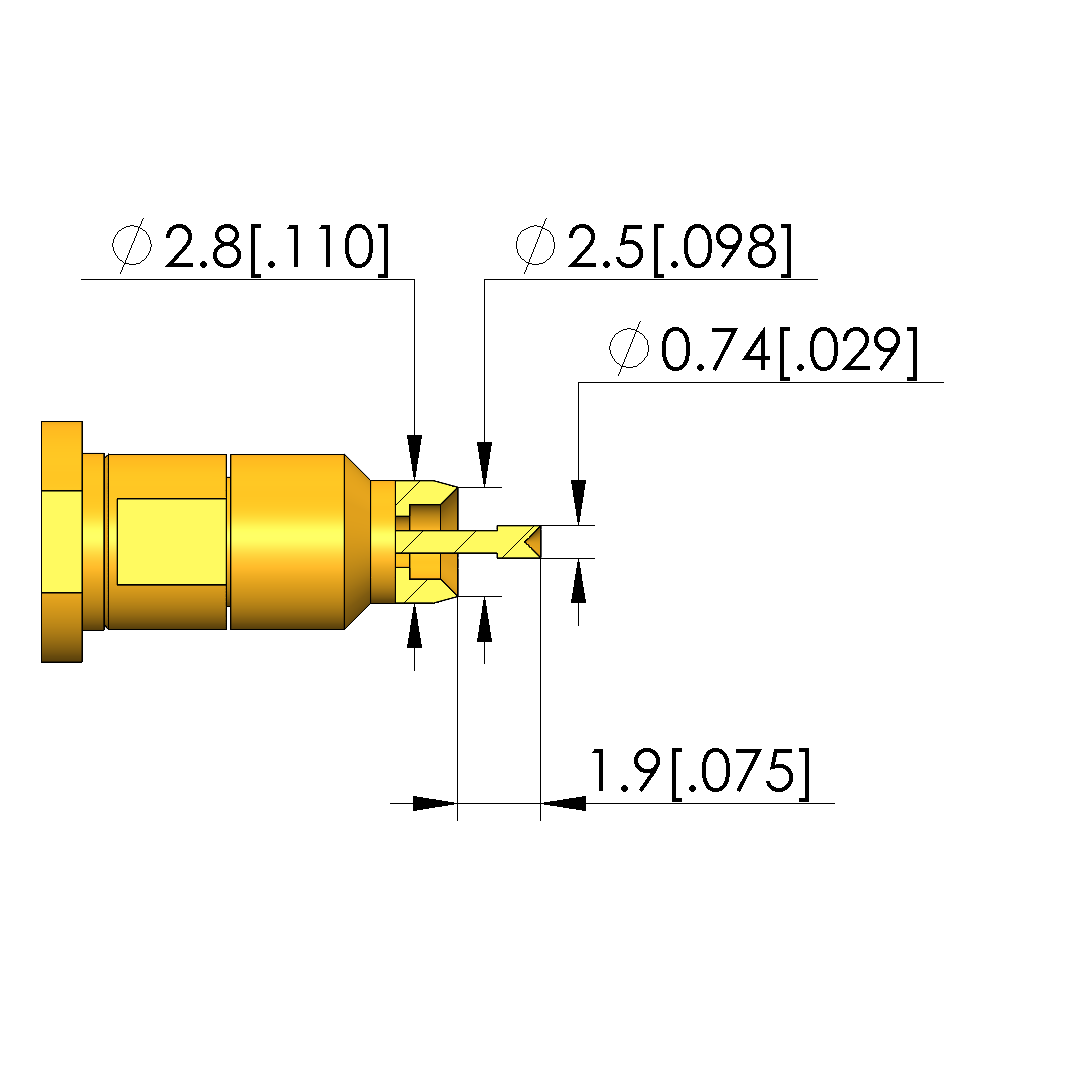 • Outer conductor tip style diameter: 2.8 mm [.11 in]