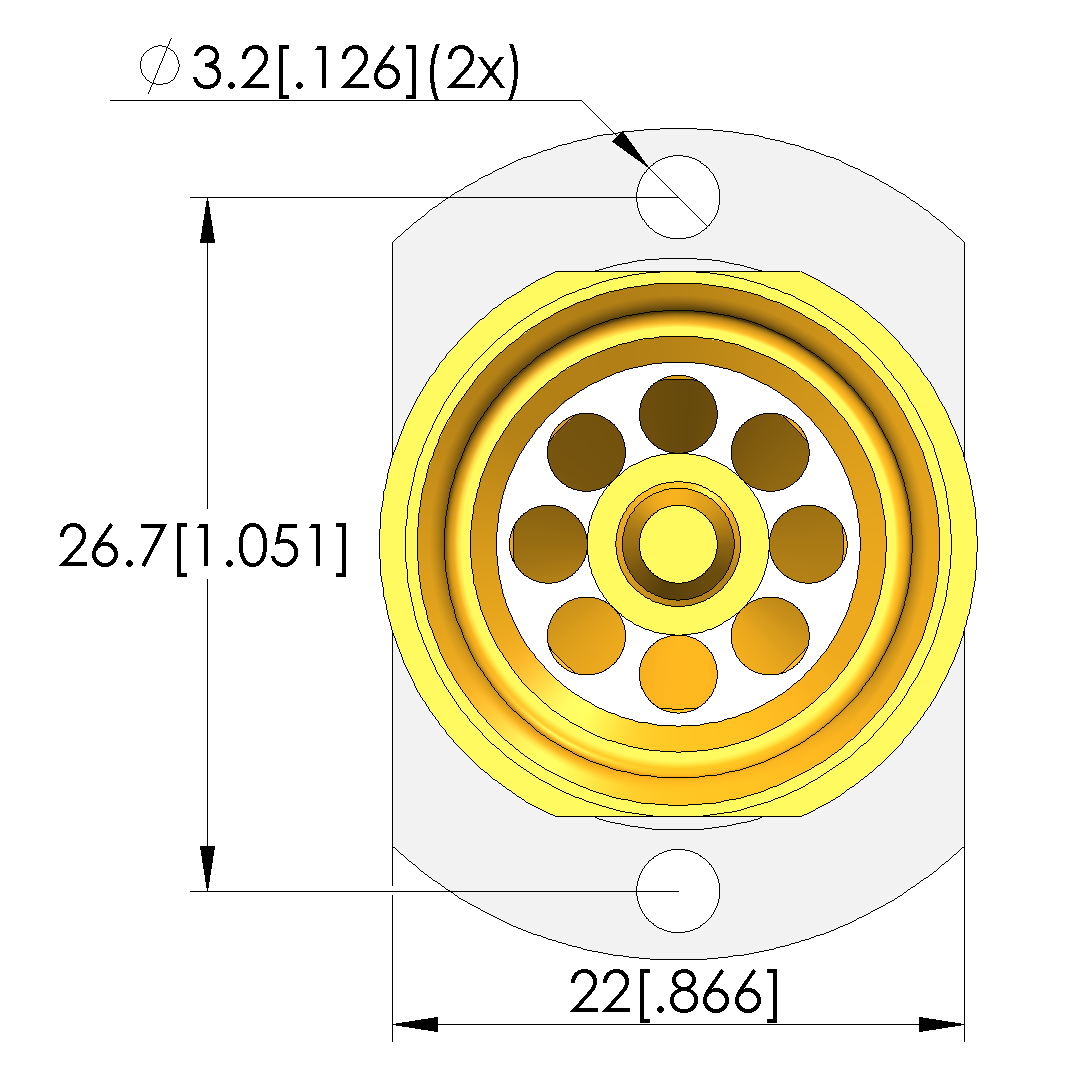 - Spring force of each inner conductor at working stroke: 5 N [17.9 ozf]
