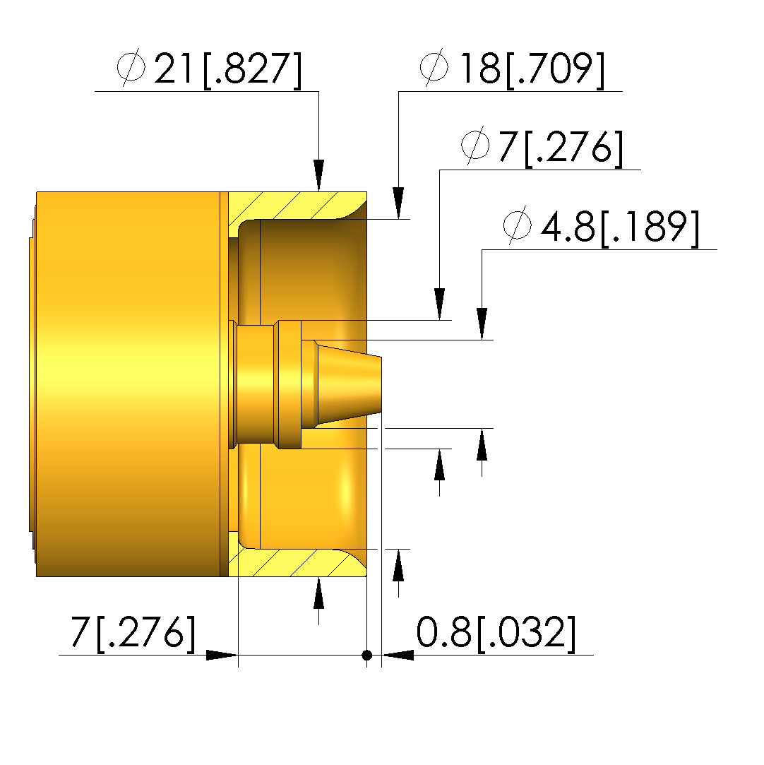 - Outer conductor tip style diameter: 21 mm [.826 in]