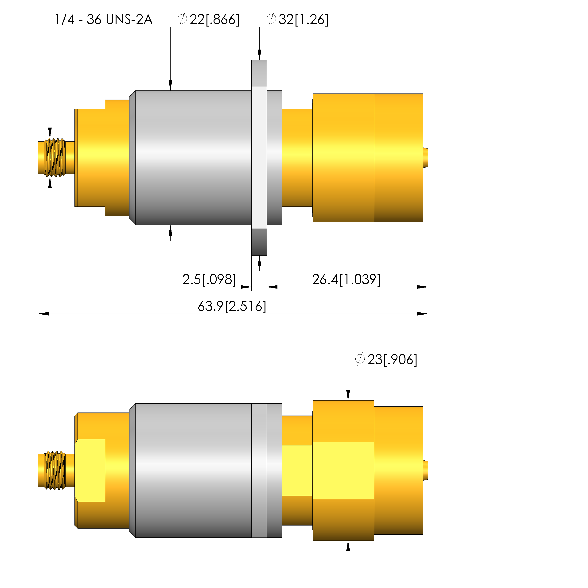 - Inner conductor maximum stroke: 4 mm [.157 in]