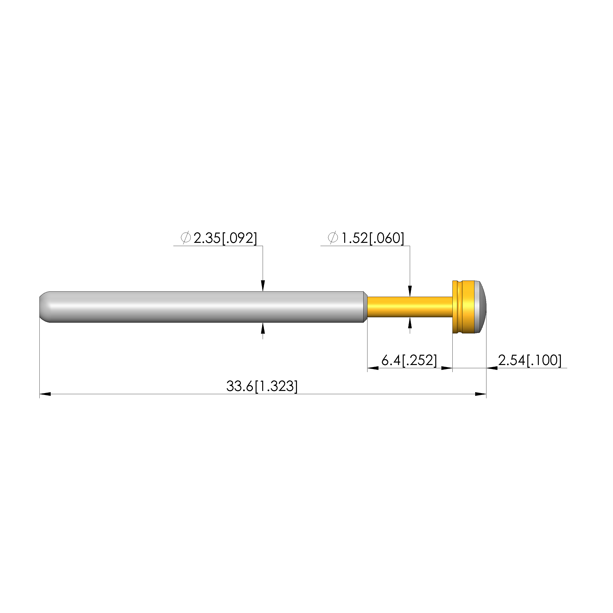 - Barrel diameter: 2.36 mm [.092 in]