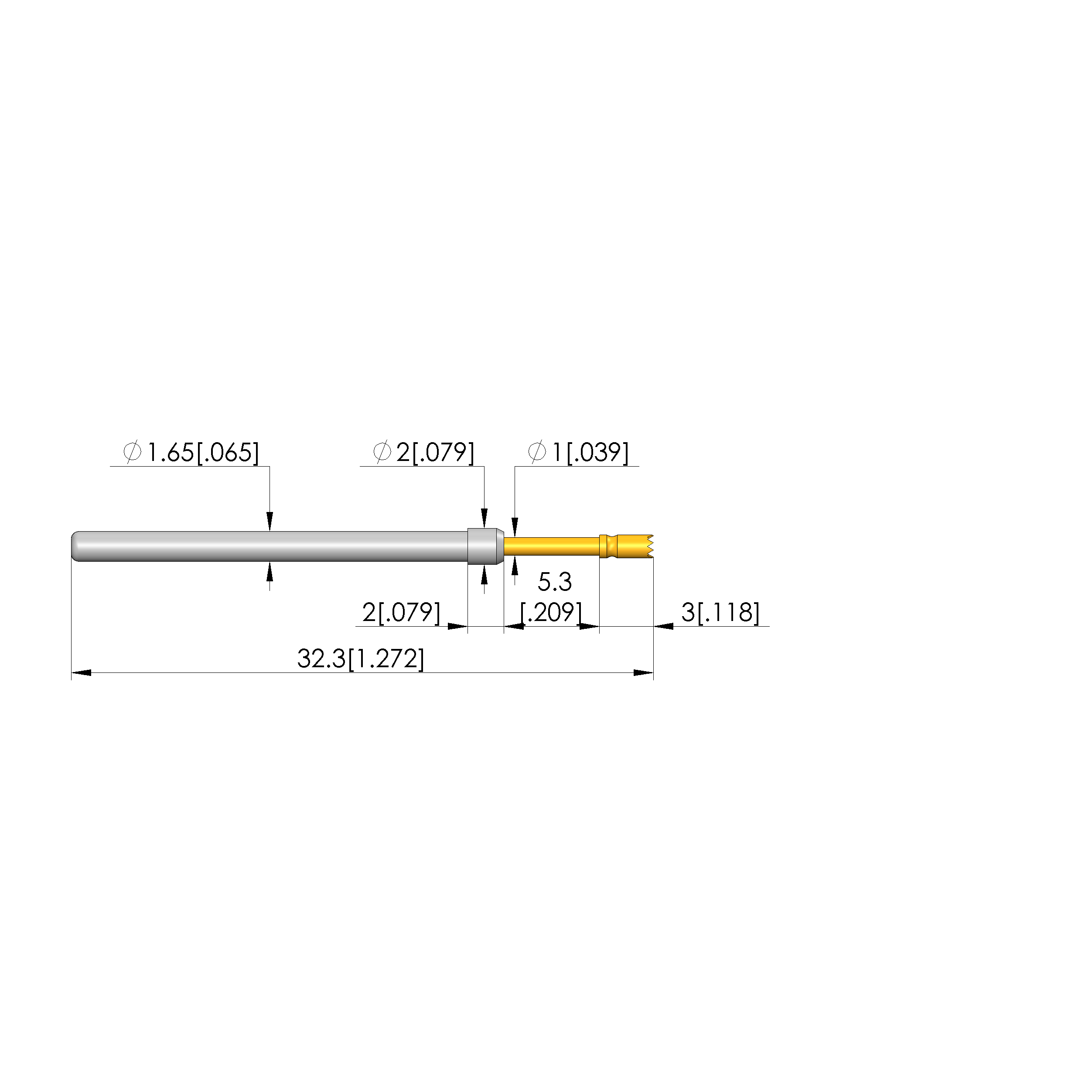 • Total length: 32.3 mm [1.27 in]