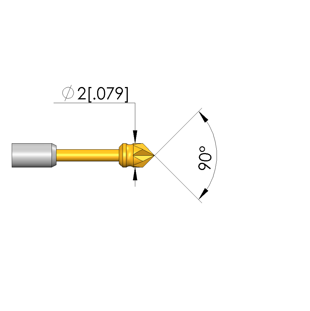 - Tip diameter: 2 mm [.078 in]