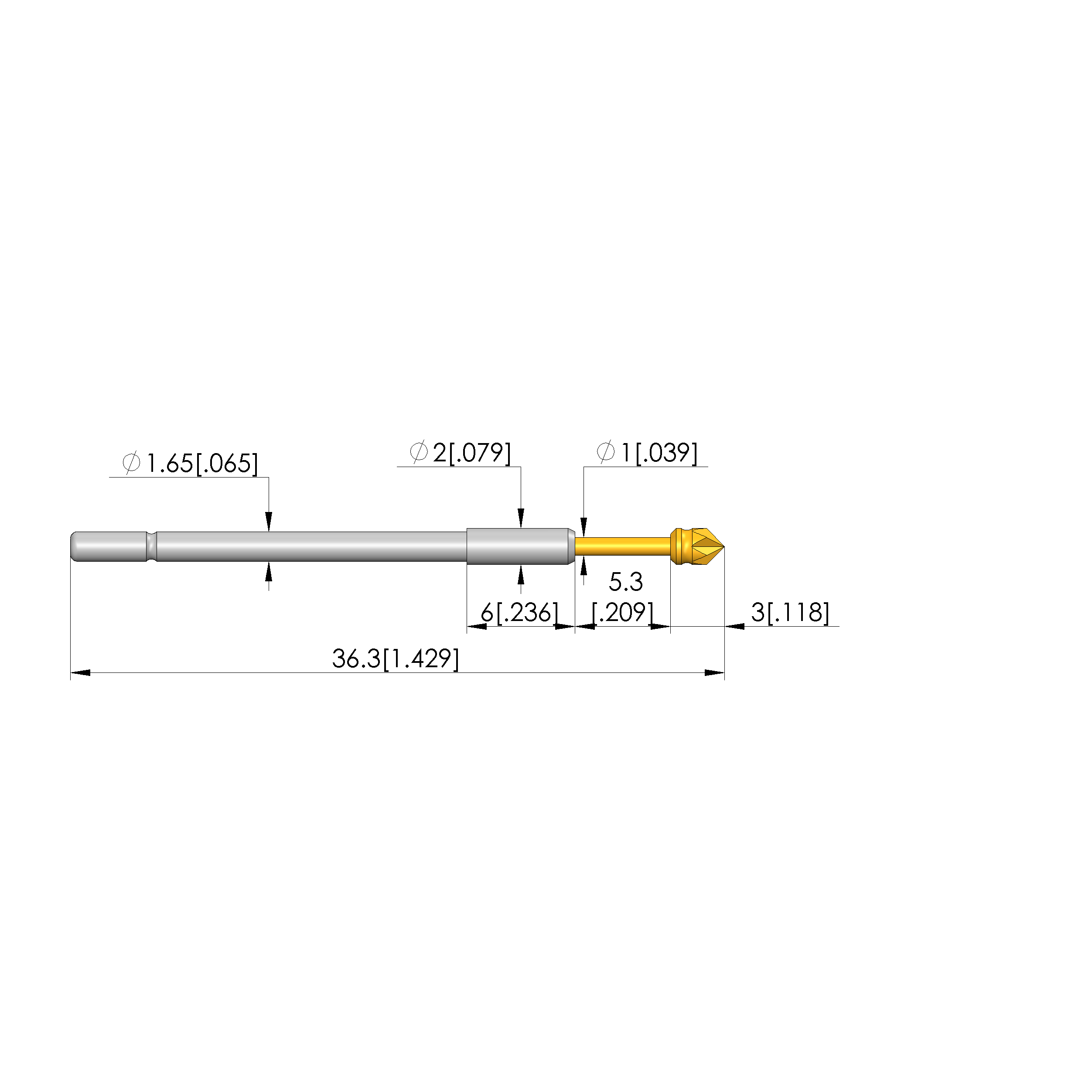 - Barrel diameter: 1.66 mm [.065 in]