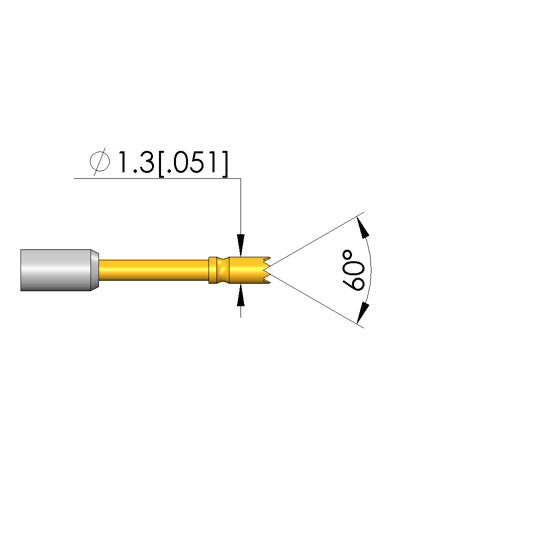 • Tip diameter: 1.3 mm [.051 in]