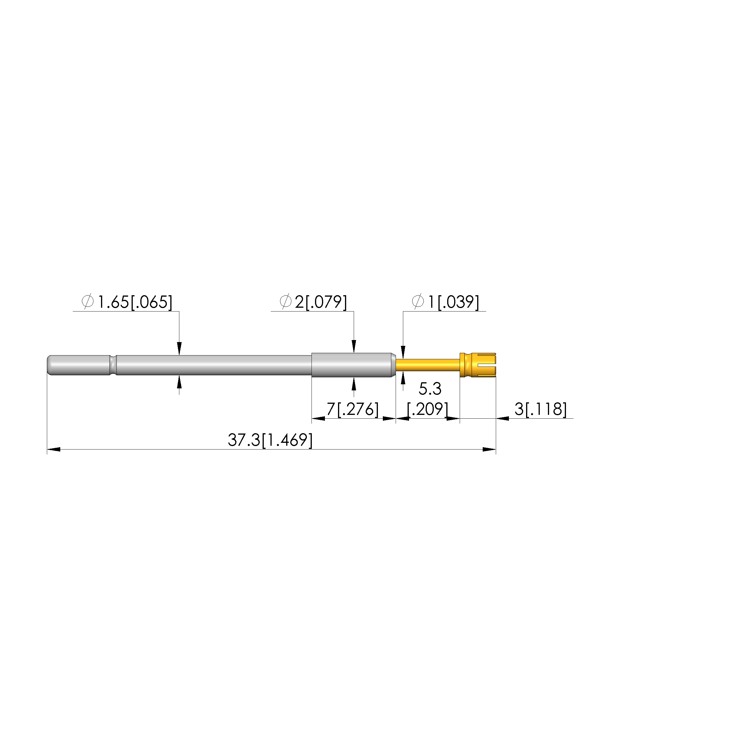 - Barrel diameter: 1.66 mm [.065 in]