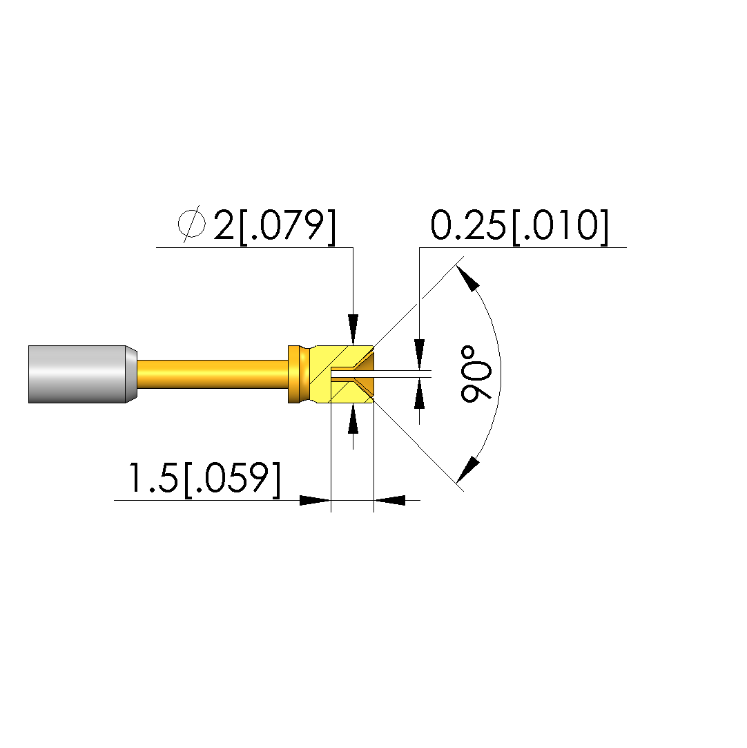 - Tip diameter: 2 mm [.078 in]