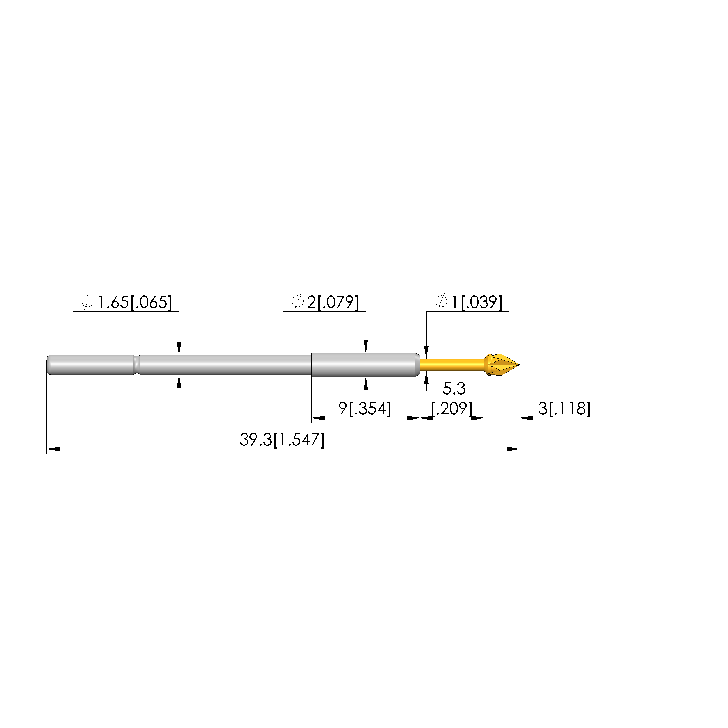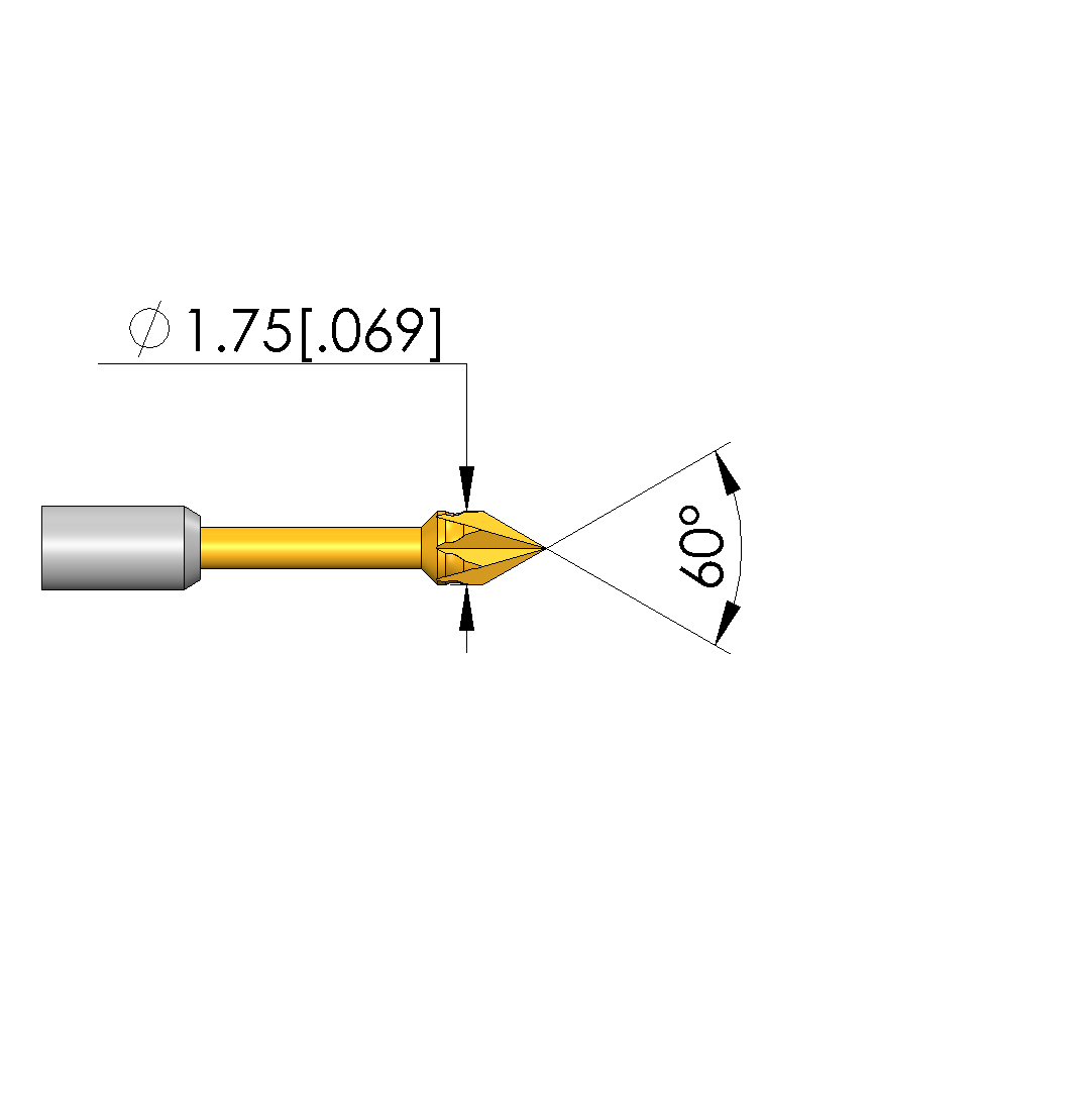 • Tip diameter: 1.75 mm [.068 in]