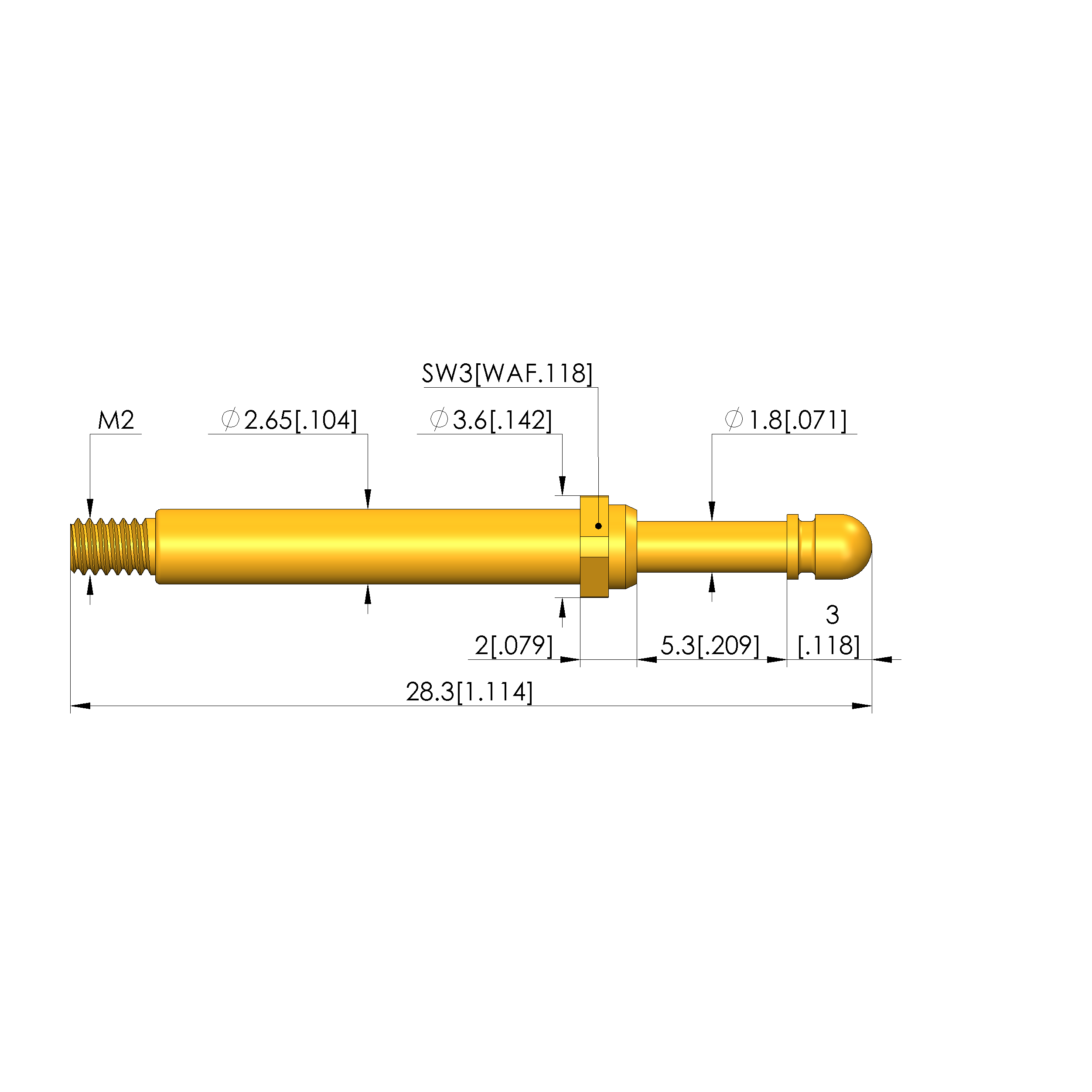 • Spring force at working stroke: 2.25 N [8.09 ozf]
