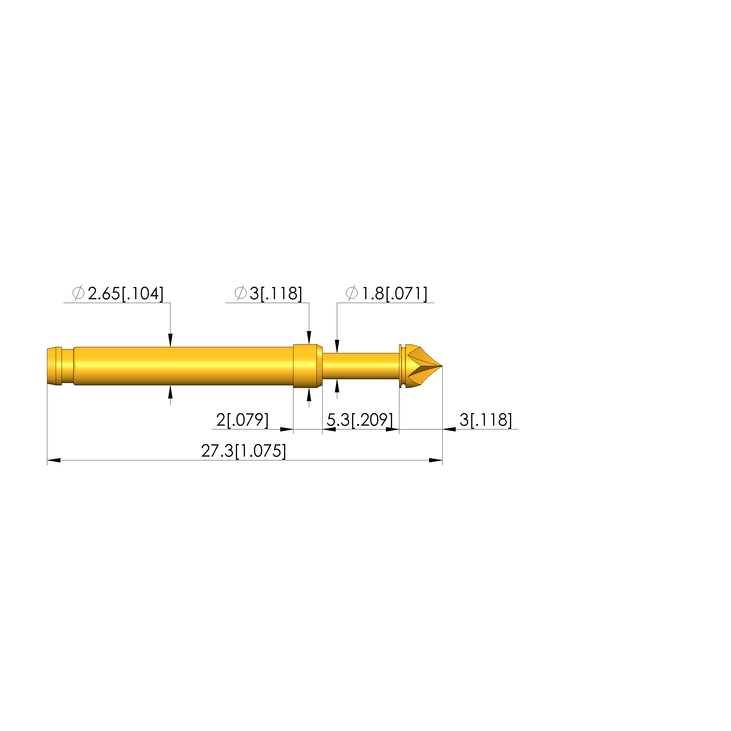 - Barrel diameter: 2.65 mm [.104 in]