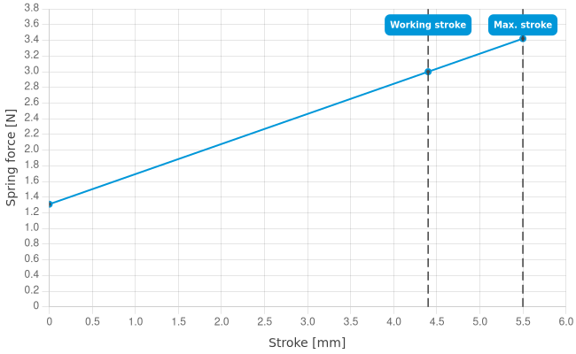 | Spring force at working stroke: | 3 N [10.7 ozf] |