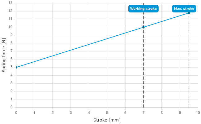 - Spring force at working stroke: 10 N [35.9 ozf]