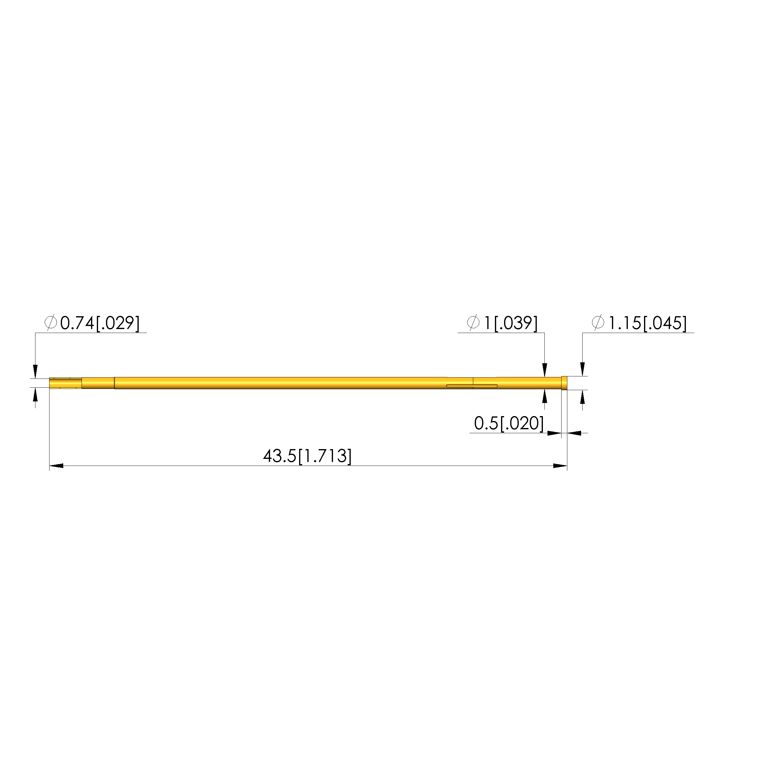 - Collar diameter: 1.15 mm [.045 in]
