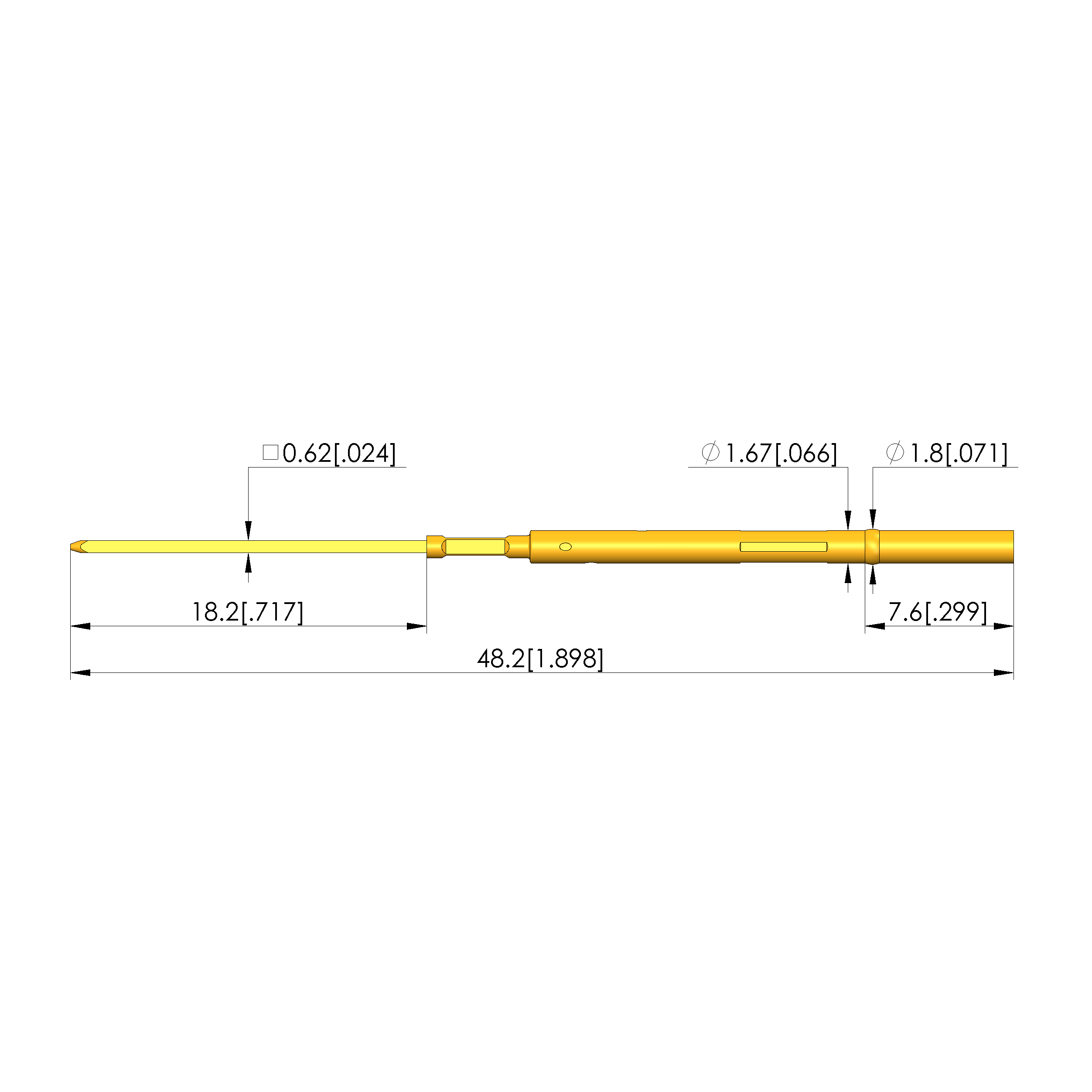 - Outer diameter: 1.67 mm [.065 in]