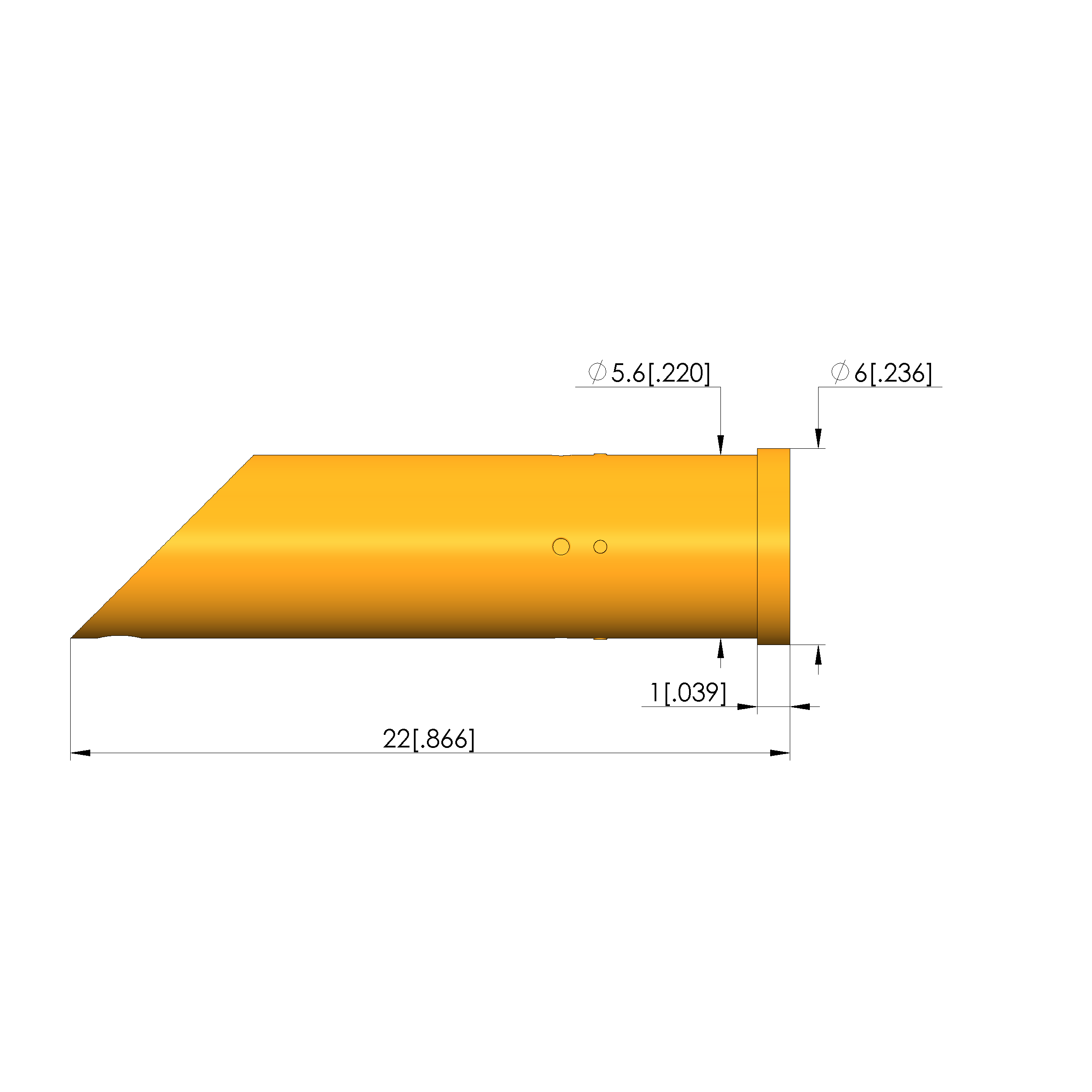 - Outer diameter: 5.6 mm [.22 in]