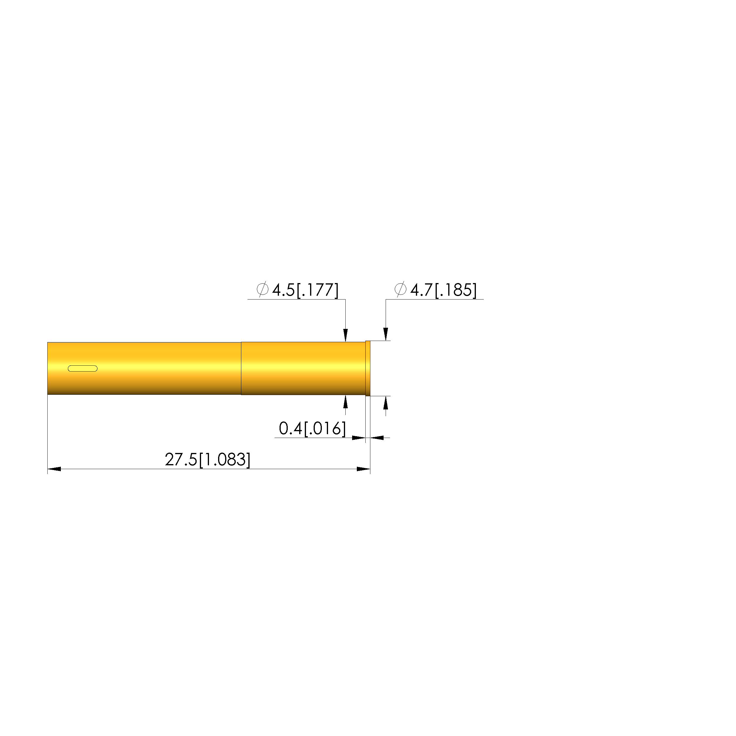 • Total length: 27.5 mm [1.08 in]