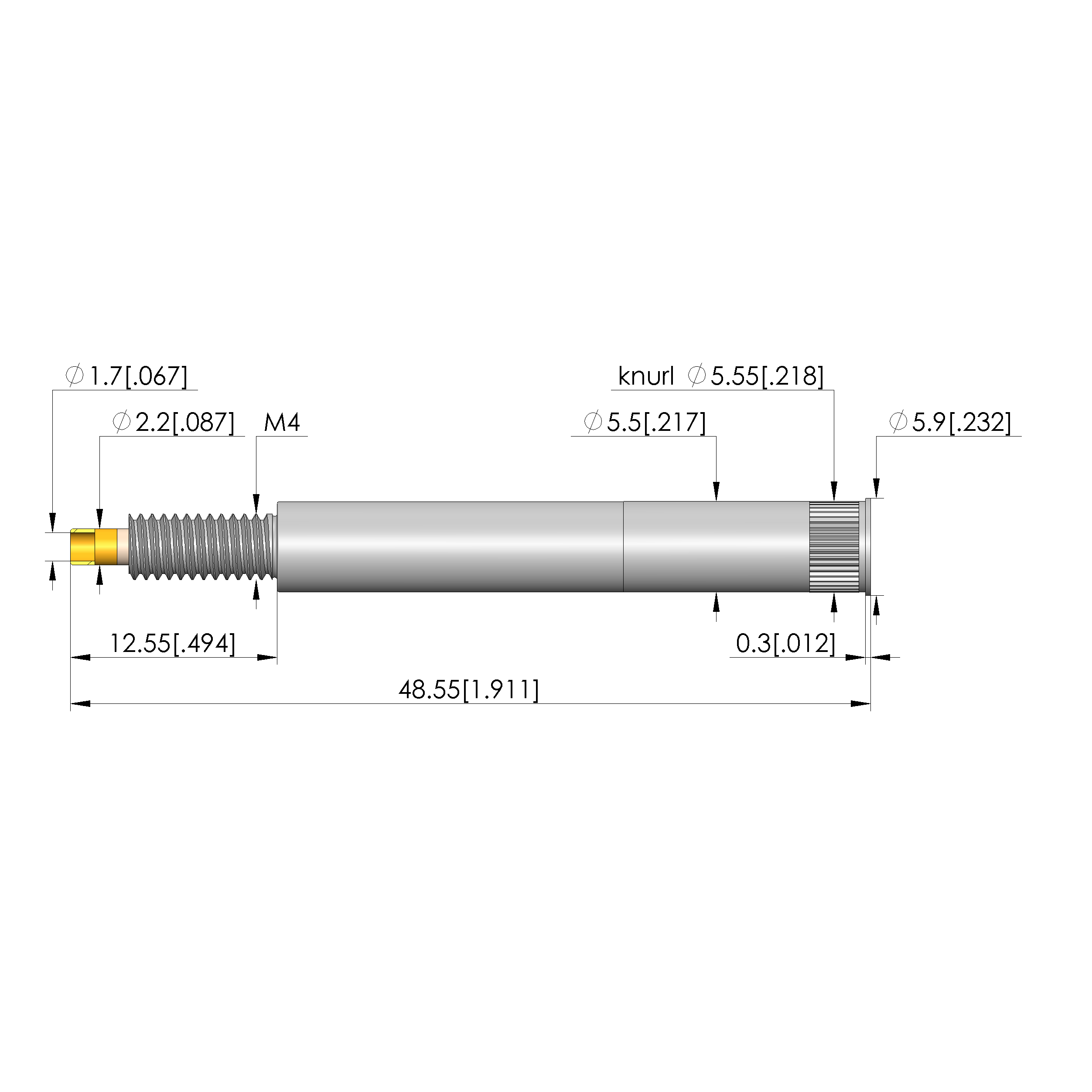• Total length: 48.5 mm [1.91 in]