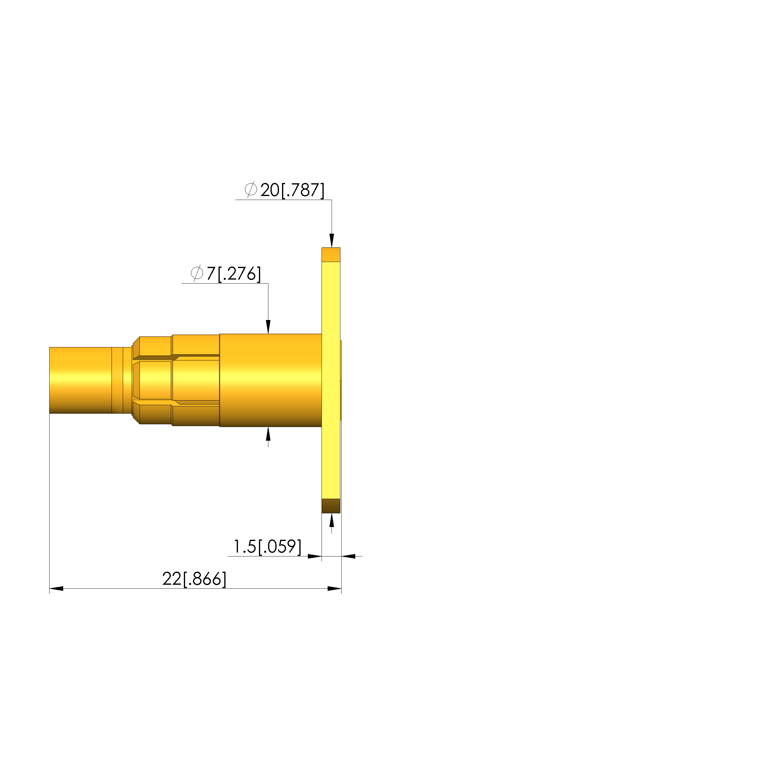 - Total length: 22 mm [.866 in]