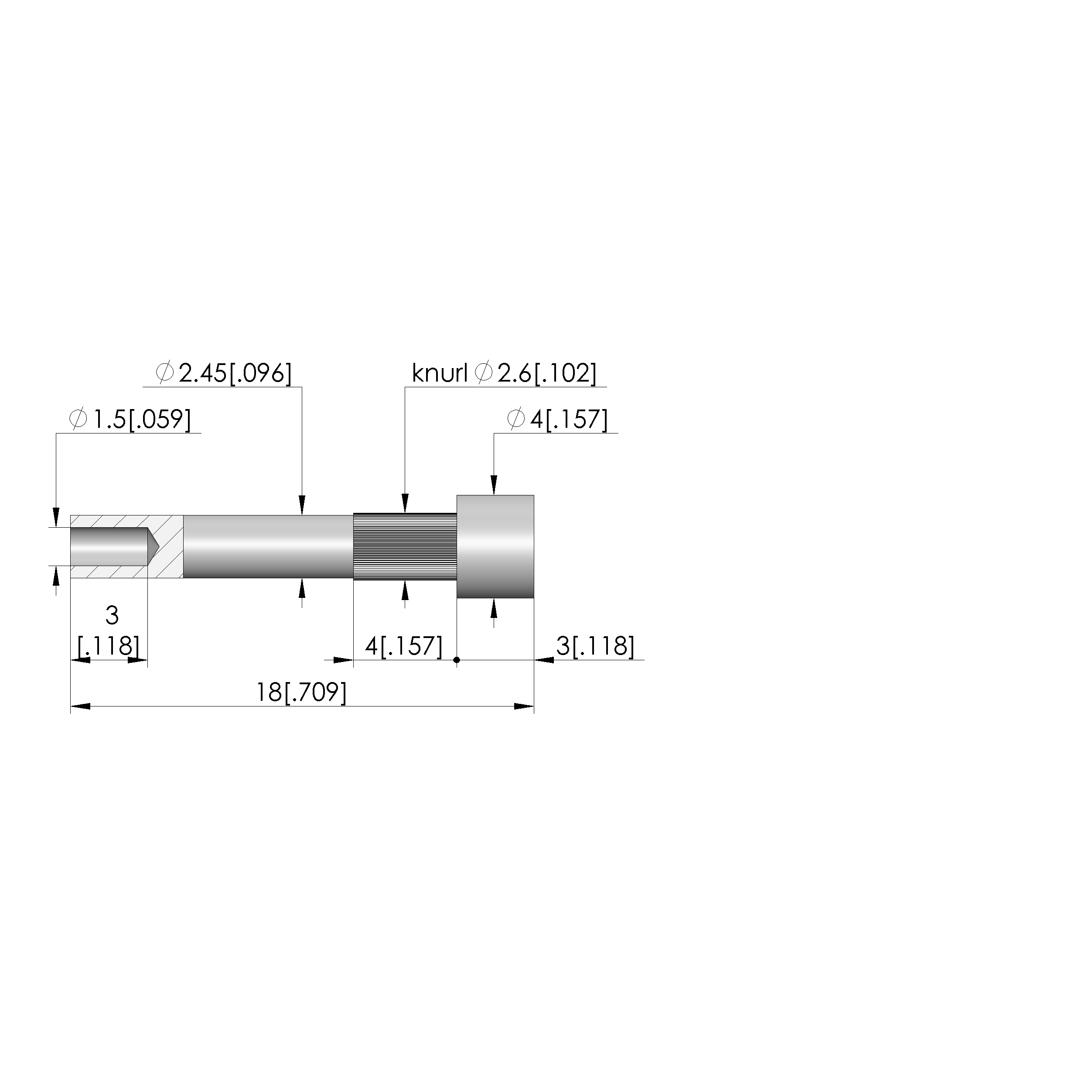 - Total length: 18 mm [.708 in]