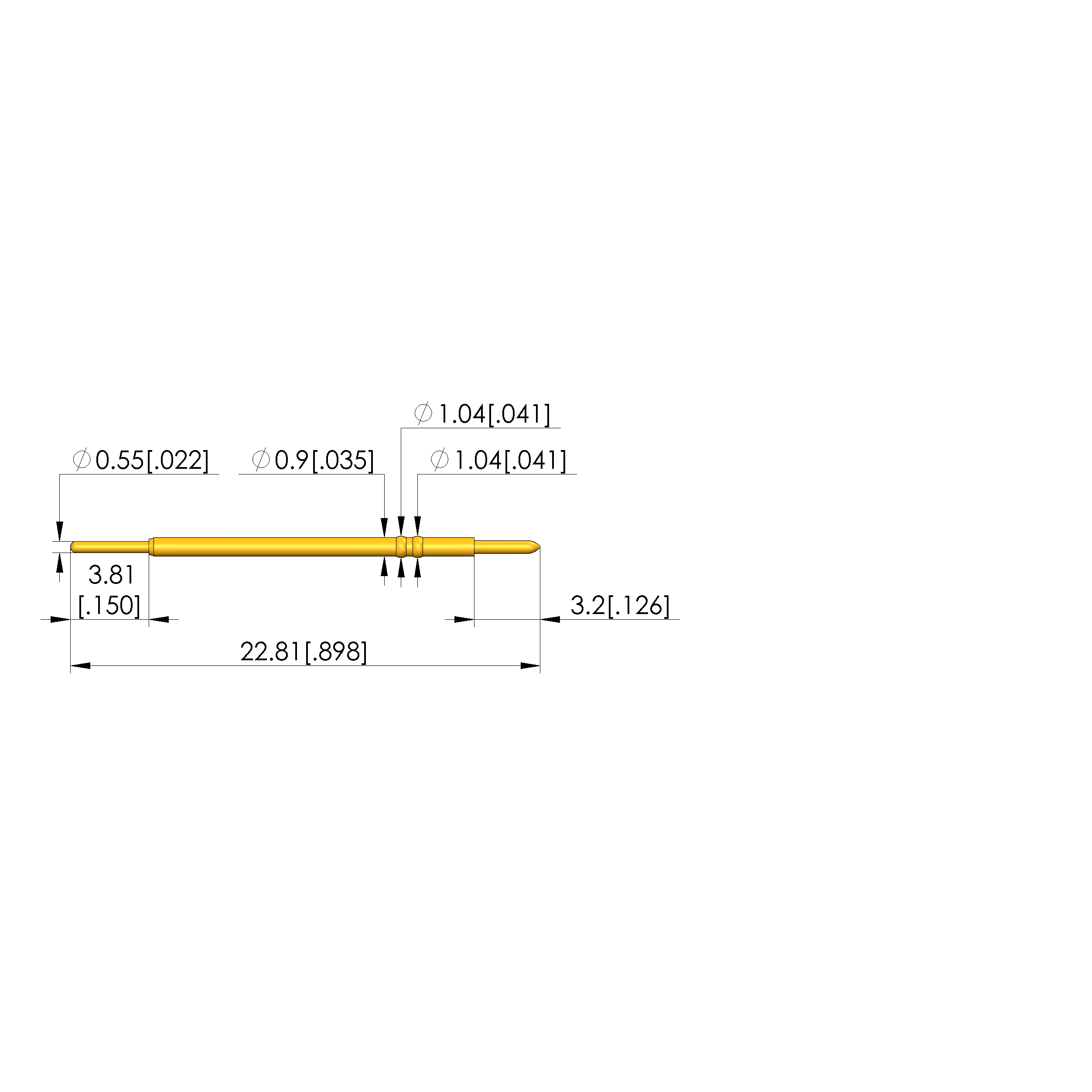 • Total length: 22.8 mm [.898 in]