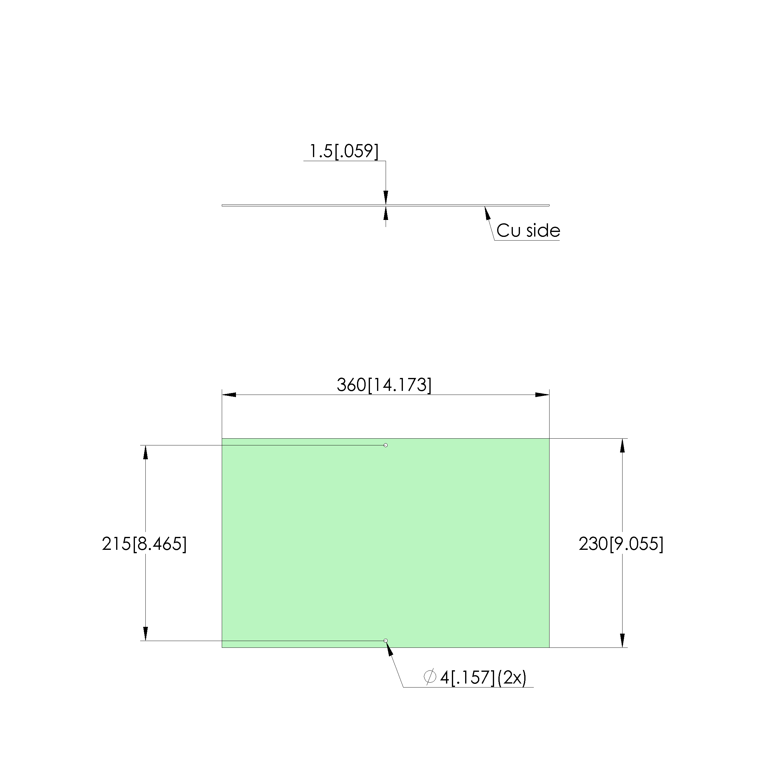 • Outer dimensionS (WxDxH): 360 x 230 x 1.5 mm [14.1 x 9.05 x .059 in]
