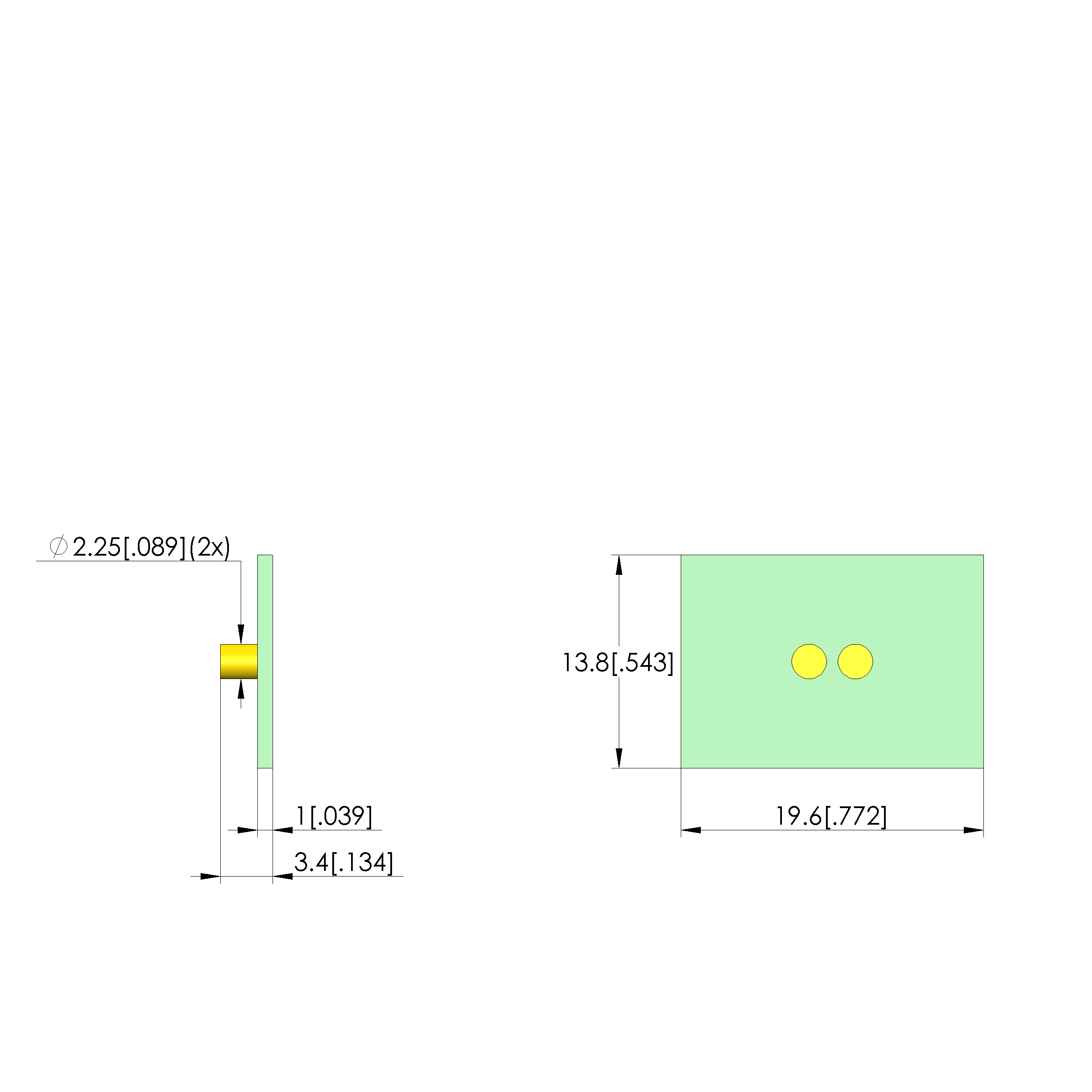 - Width: 13.8 mm [.543 in]