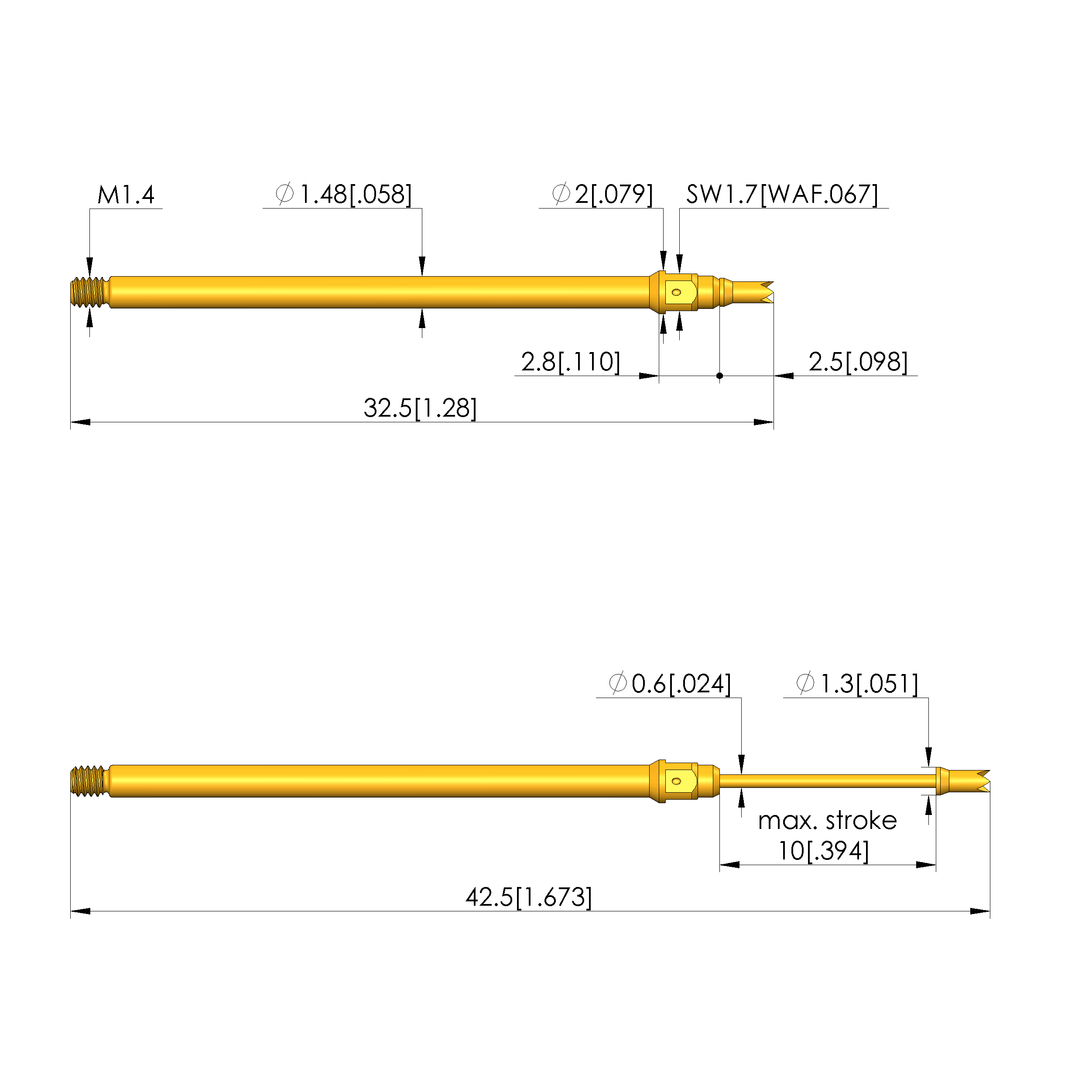 - Spring force at working stroke: 0.3 N [1.07 ozf]