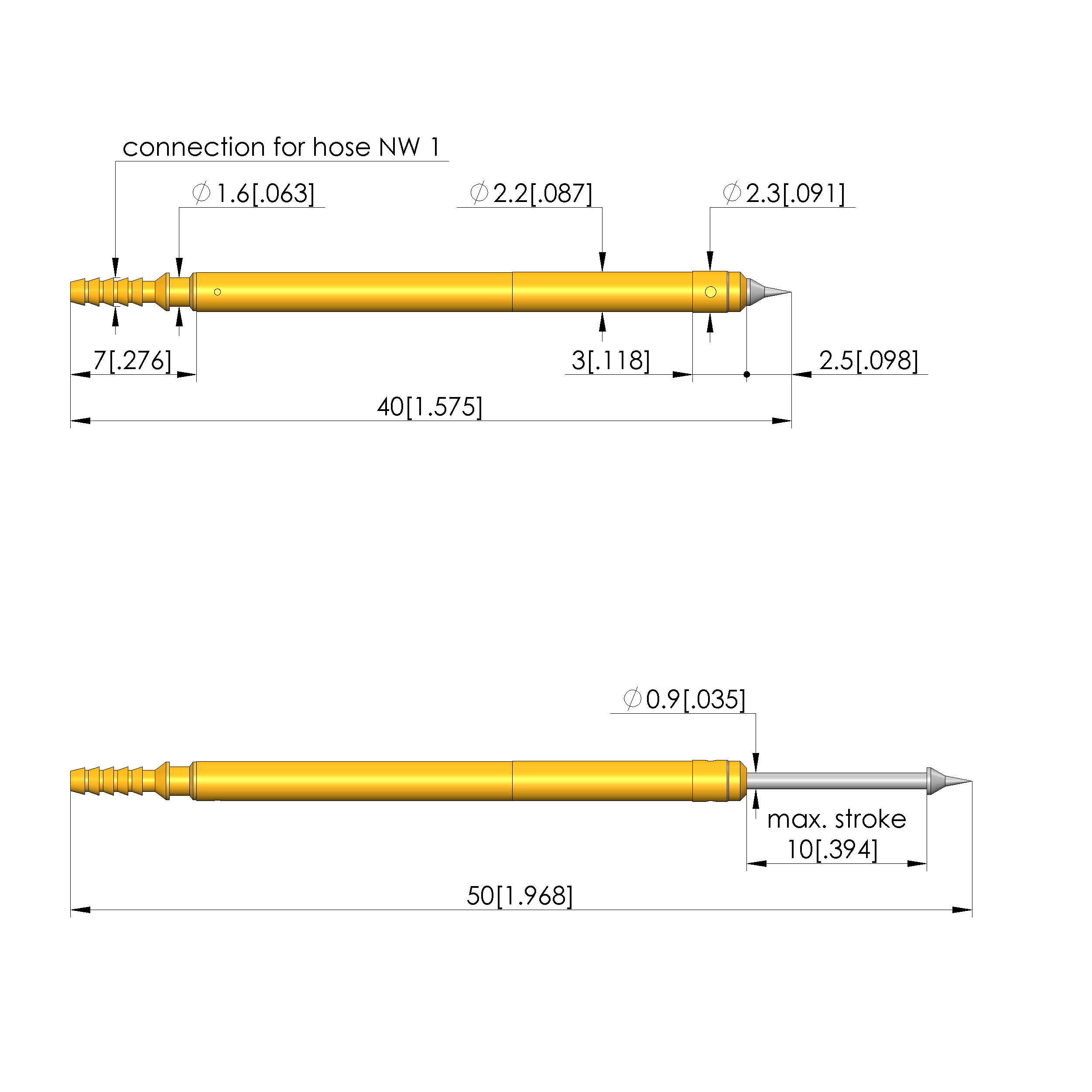 | Barrel diameter: | 2.2 mm [.086 in] |