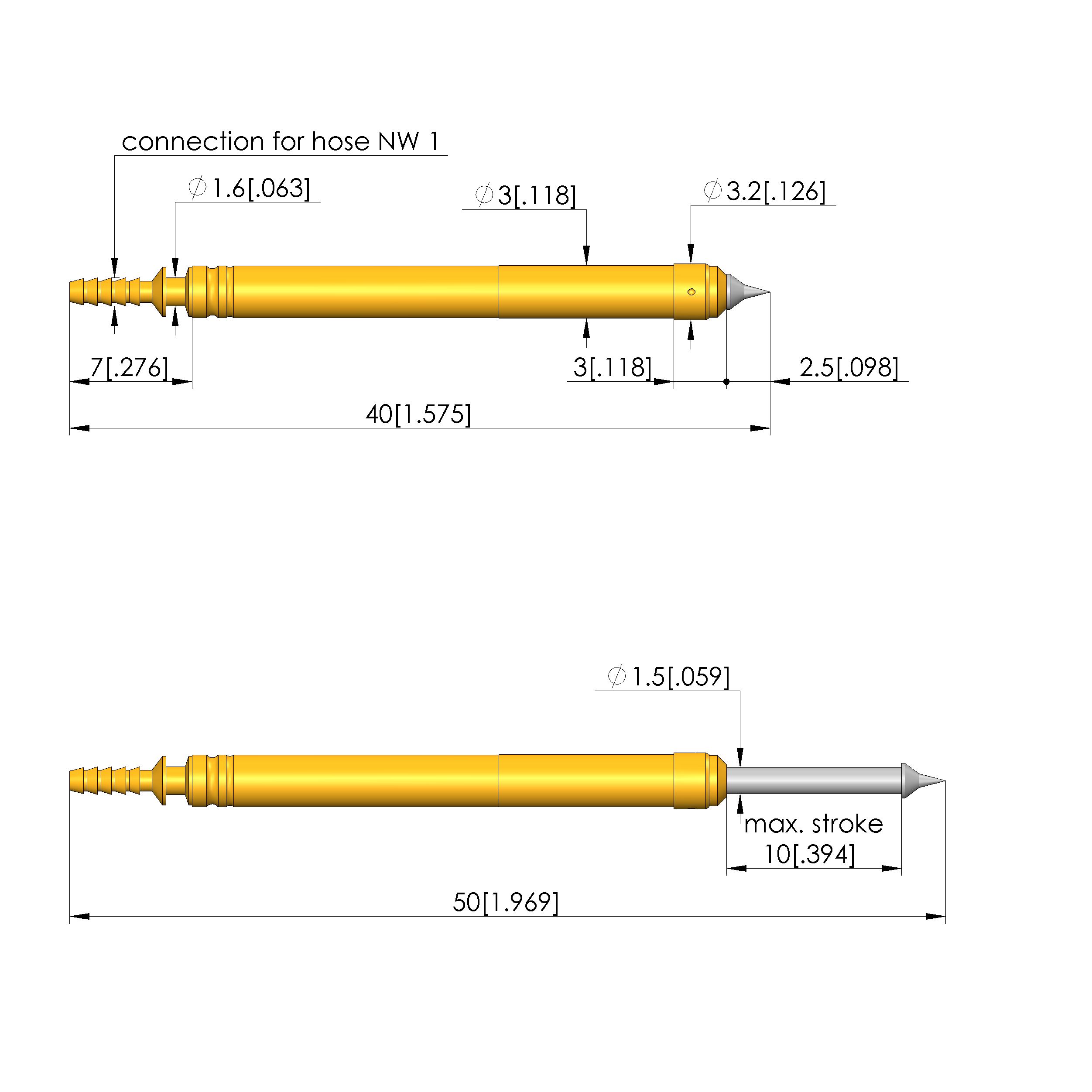 - Spring force at working stroke: 1.1 N [3.95 ozf]