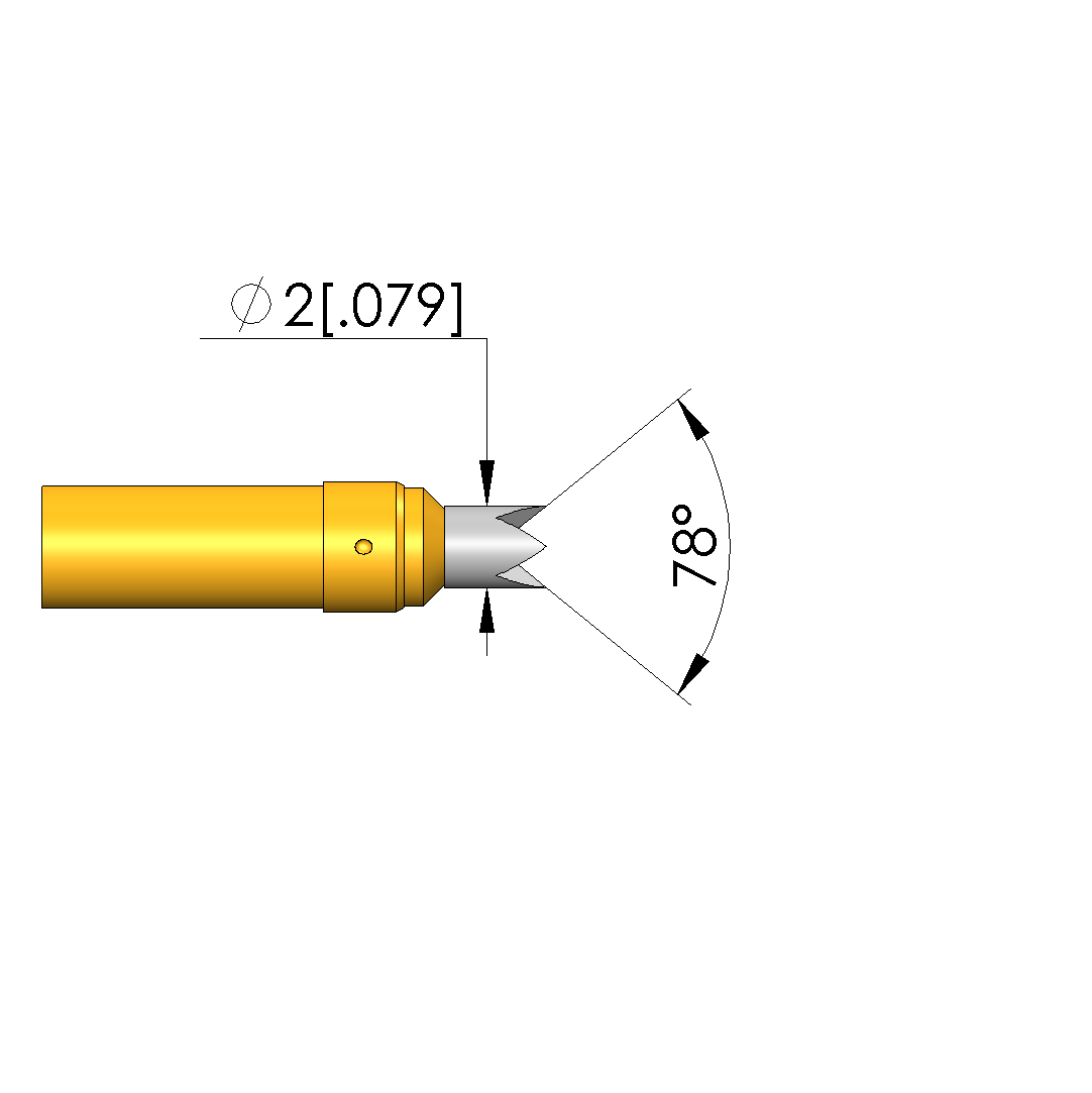 - Tip diameter: 2 mm [.078 in]