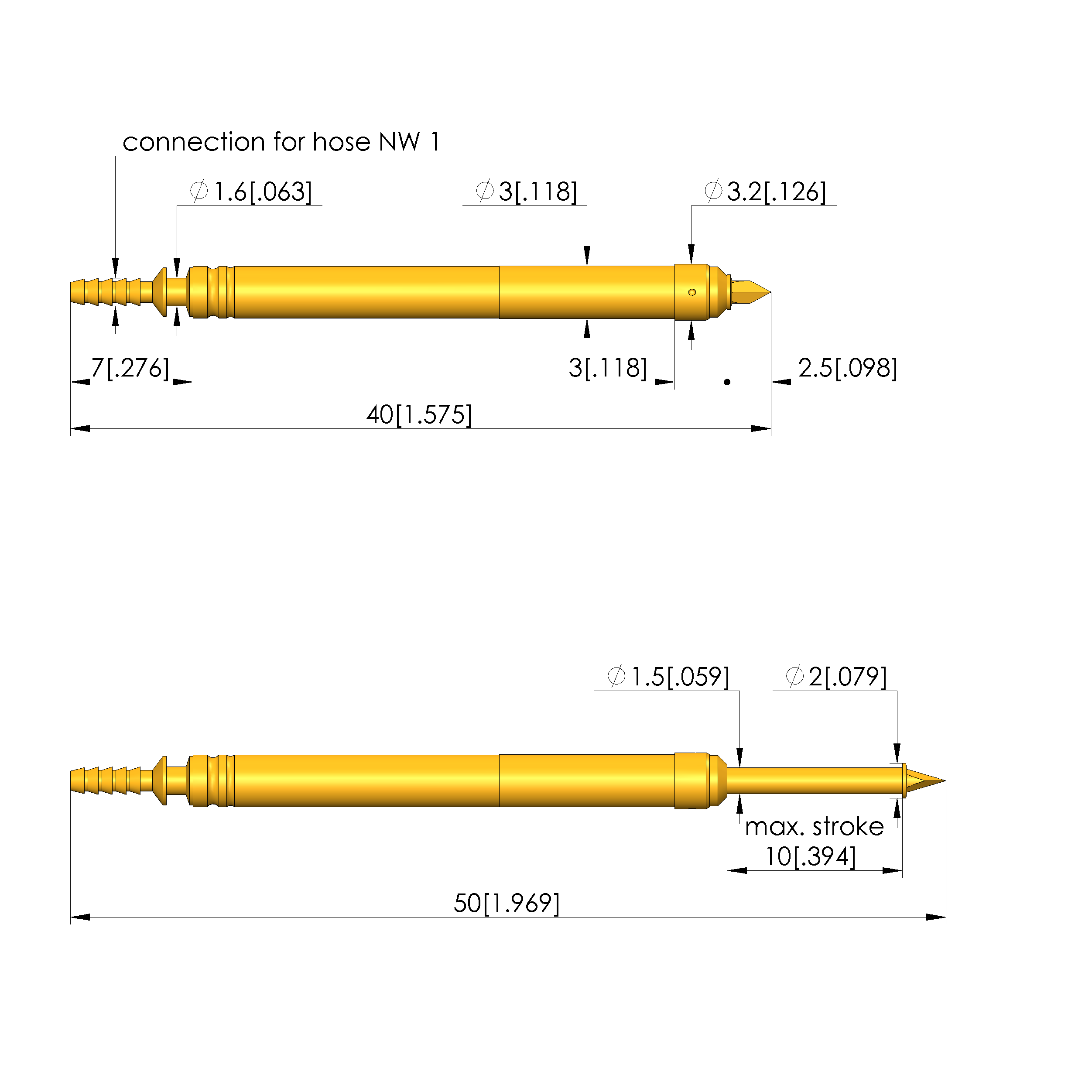 • Spring force at working stroke: 1.1 N [3.95 ozf]