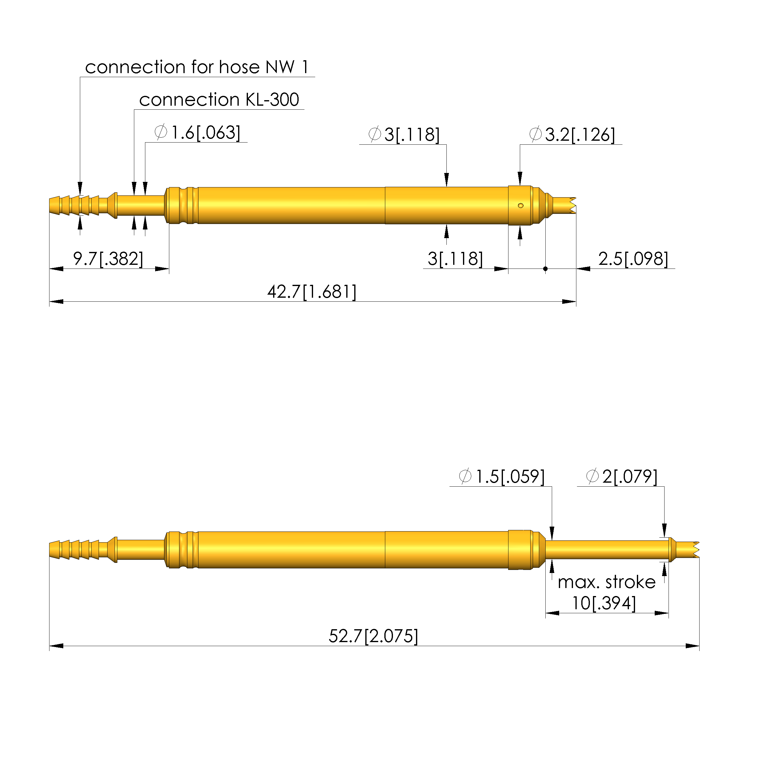 - Spring force at working stroke: 1.5 N [5.39 ozf]
