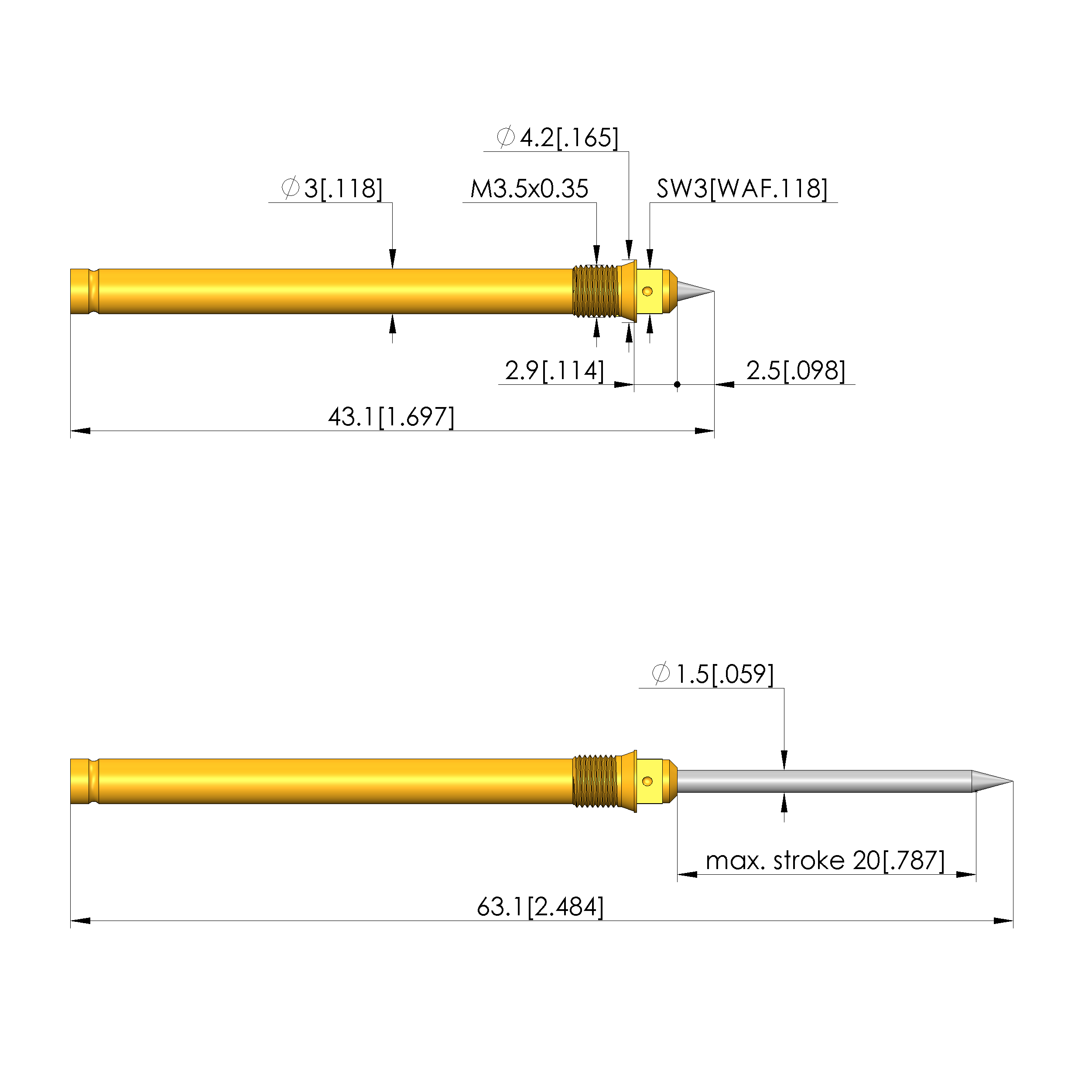 - Spring force at working stroke: 1.7 N [6.11 ozf]