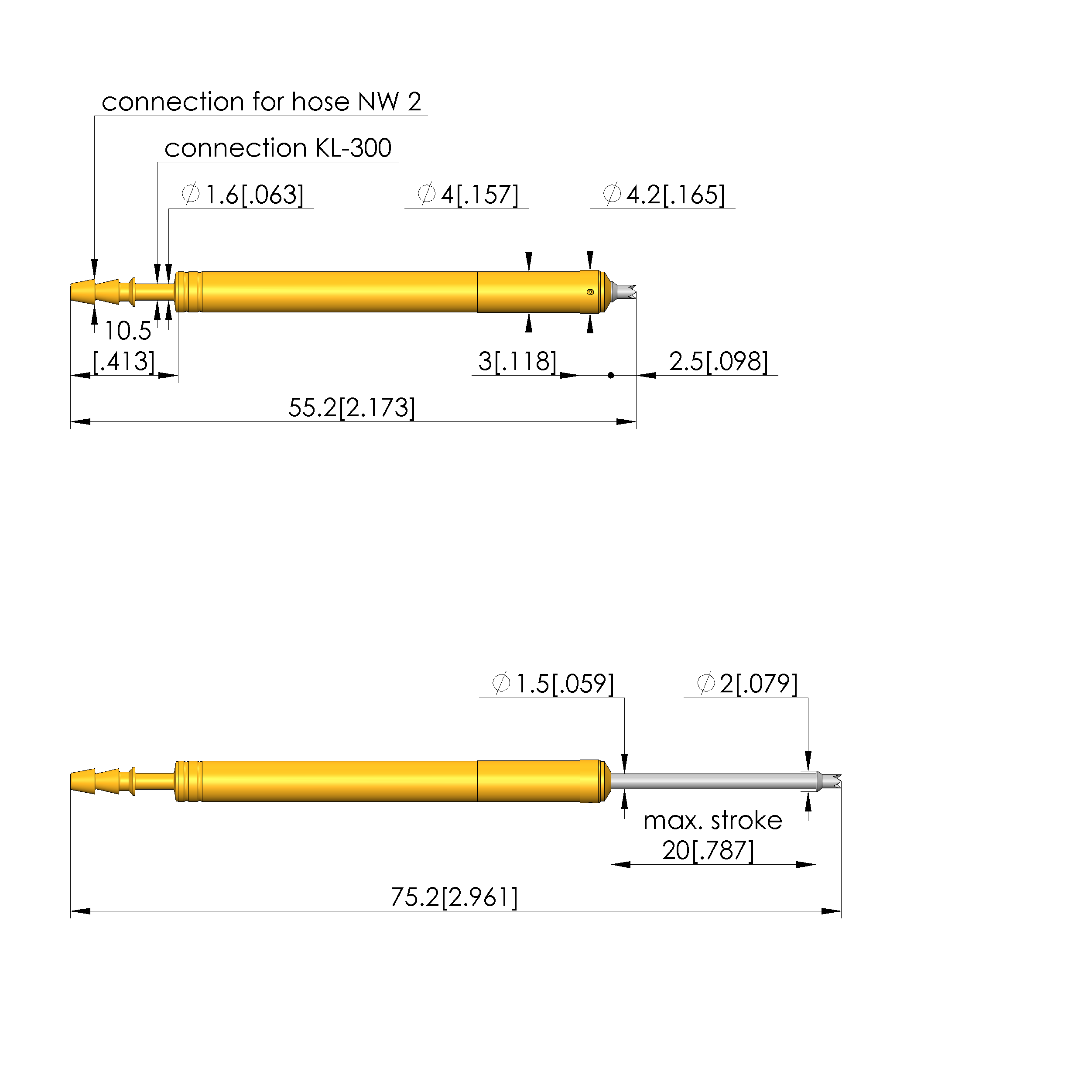 • Spring force at working stroke: 3.7 N [13.3 ozf]
