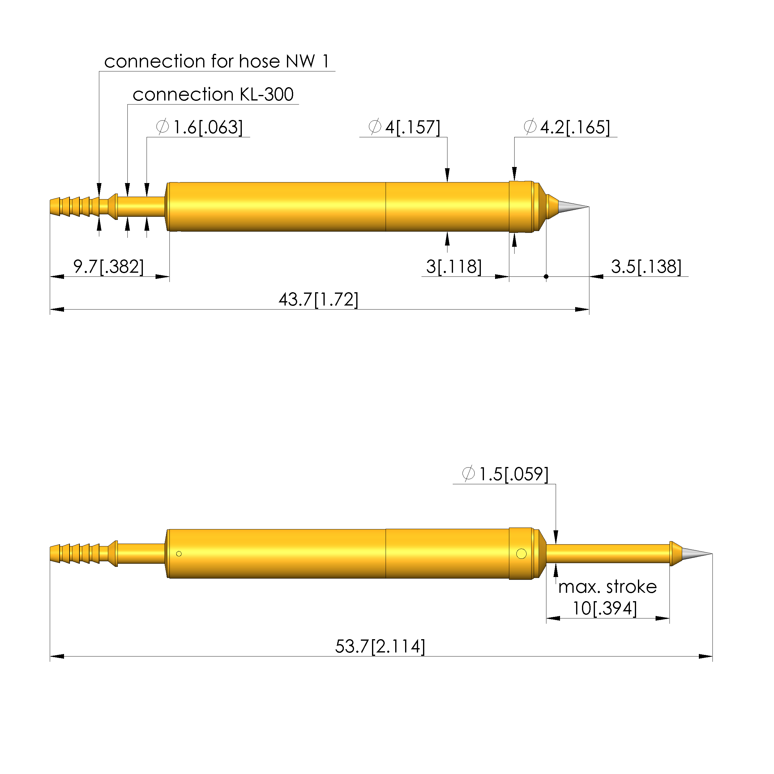 • Barrel diameter: 4 mm [.157 in]