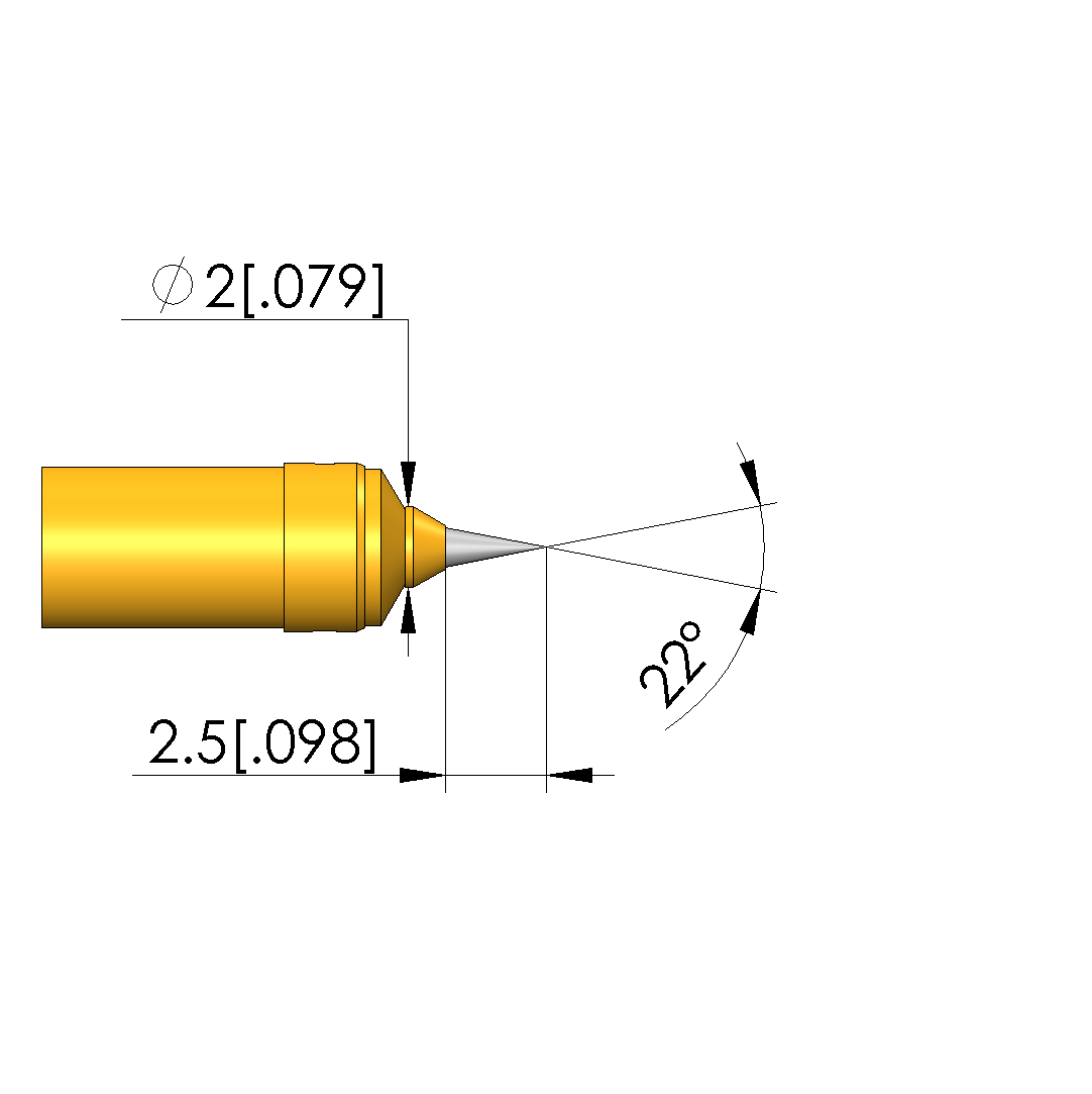 • Tip diameter: 2 mm [.078 in]