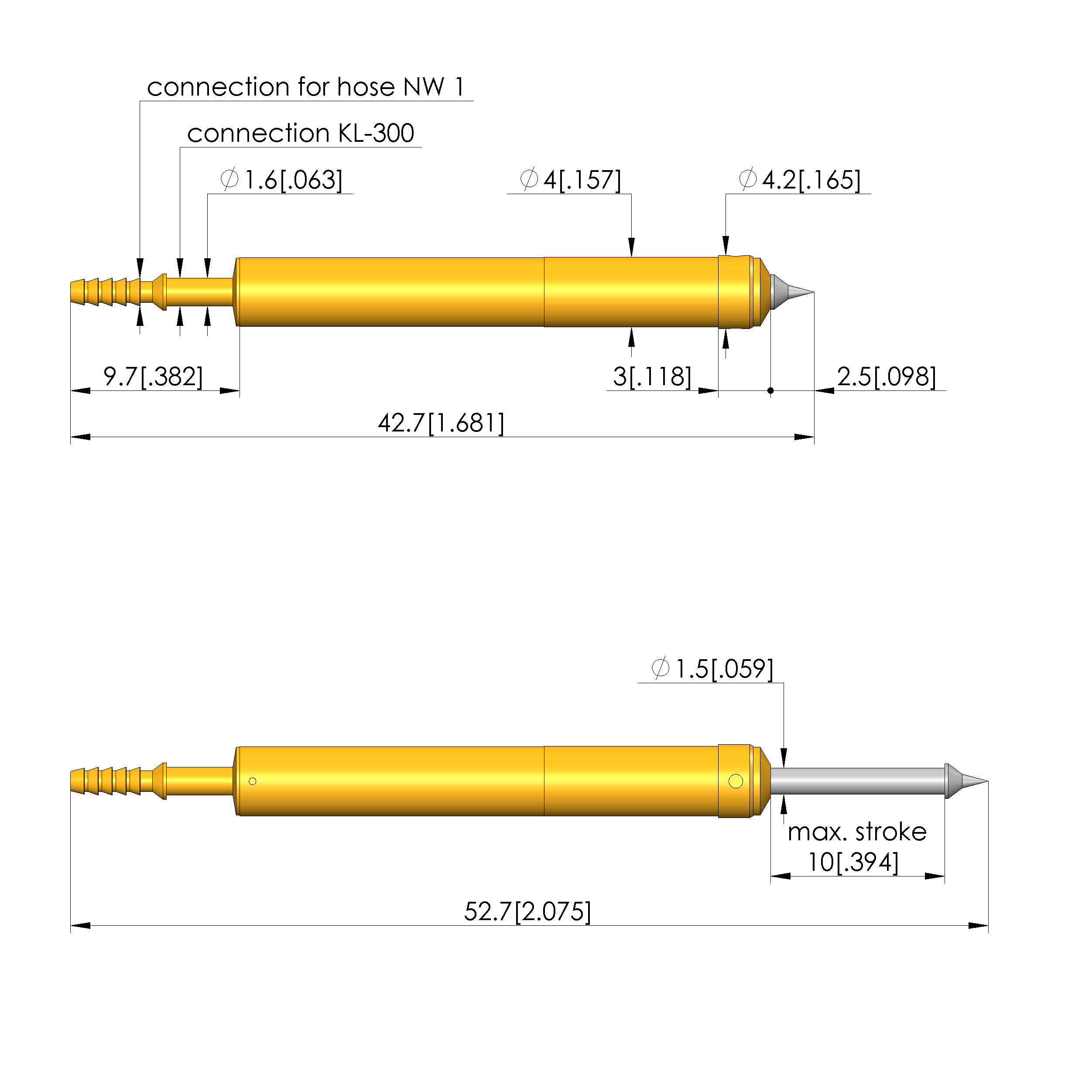 • Spring force at working stroke: 3.7 N [13.3 ozf]