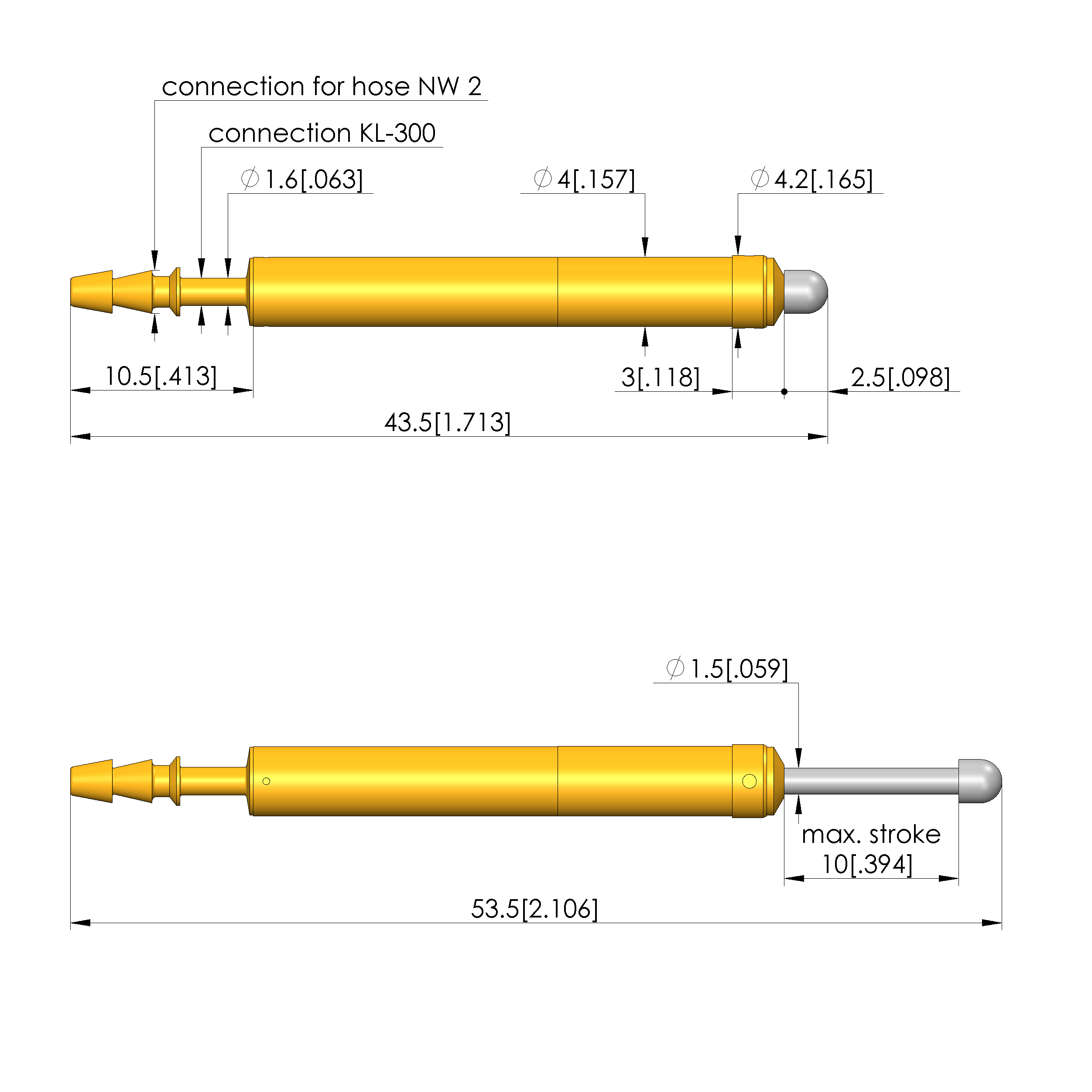 - Spring force at working stroke: 4.2 N [15.1 ozf]