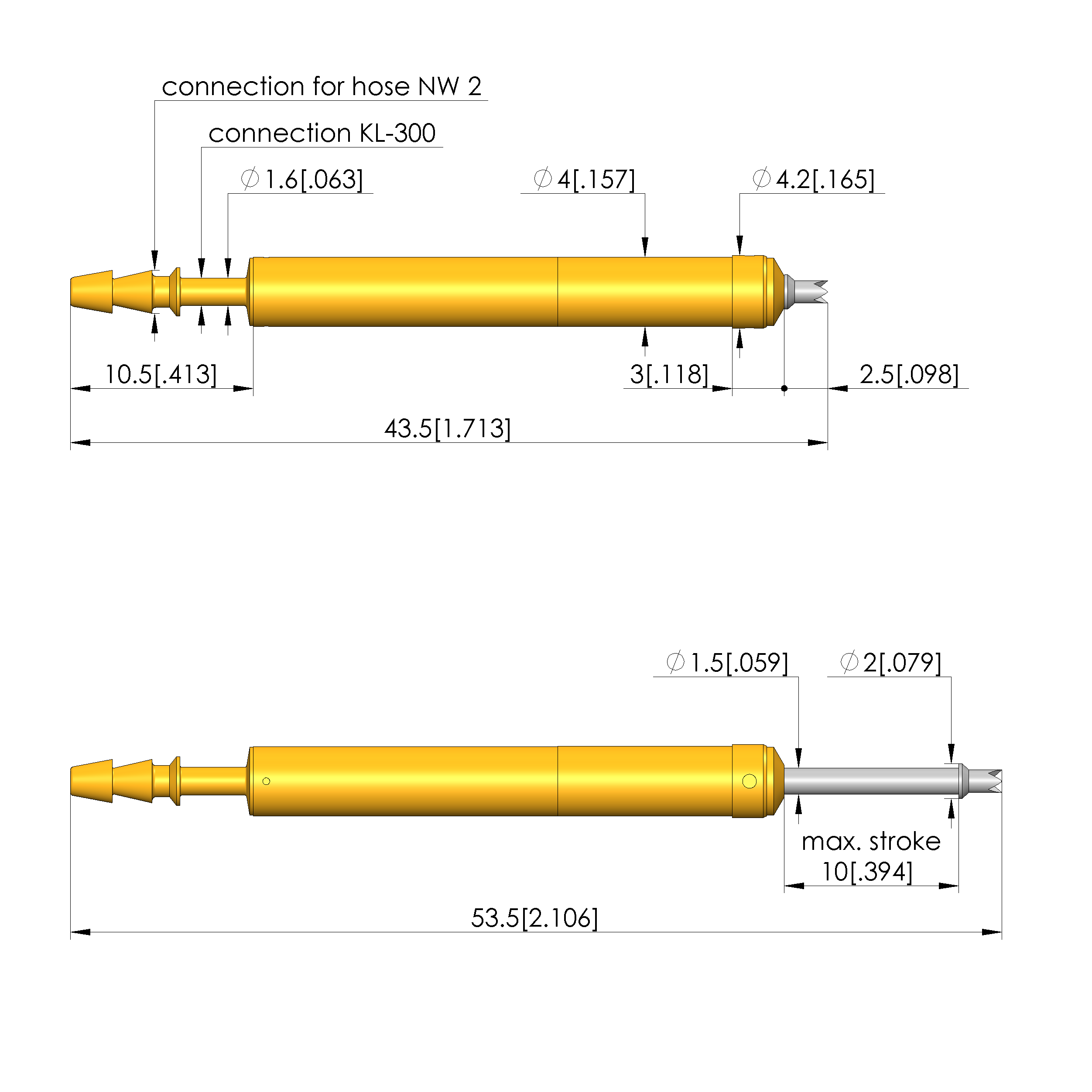 - Spring force at working stroke: 4.2 N [15.1 ozf]